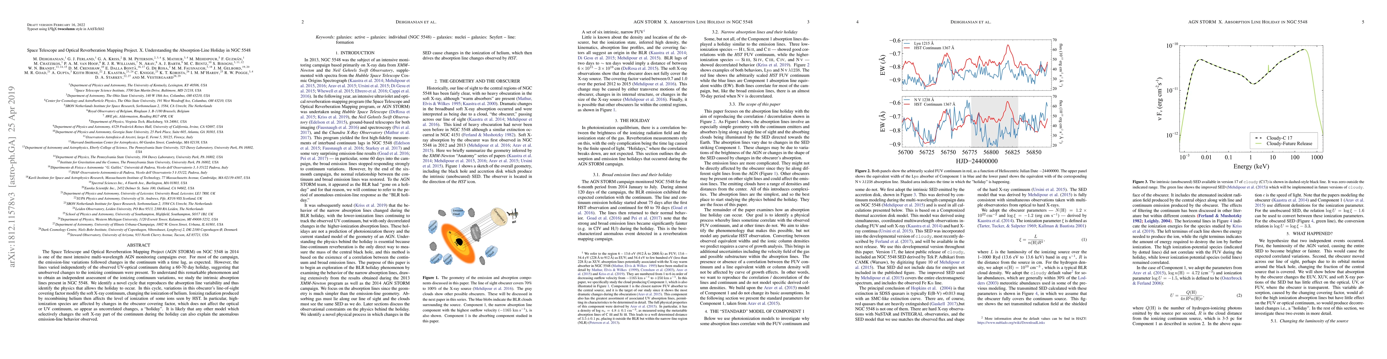 The paper investigates the "Absorption-Line Holiday" observed in NGC 5548 during the AGN STORM campaign, where emission lines varied independently of the UV-optical continuum. The study identifies a novel cycle involving changes in the covering factor of an intrinsic absorber, which alters the soft X-ray continuum and affects the ionization of helium gas, explaining the anomalous behavior.