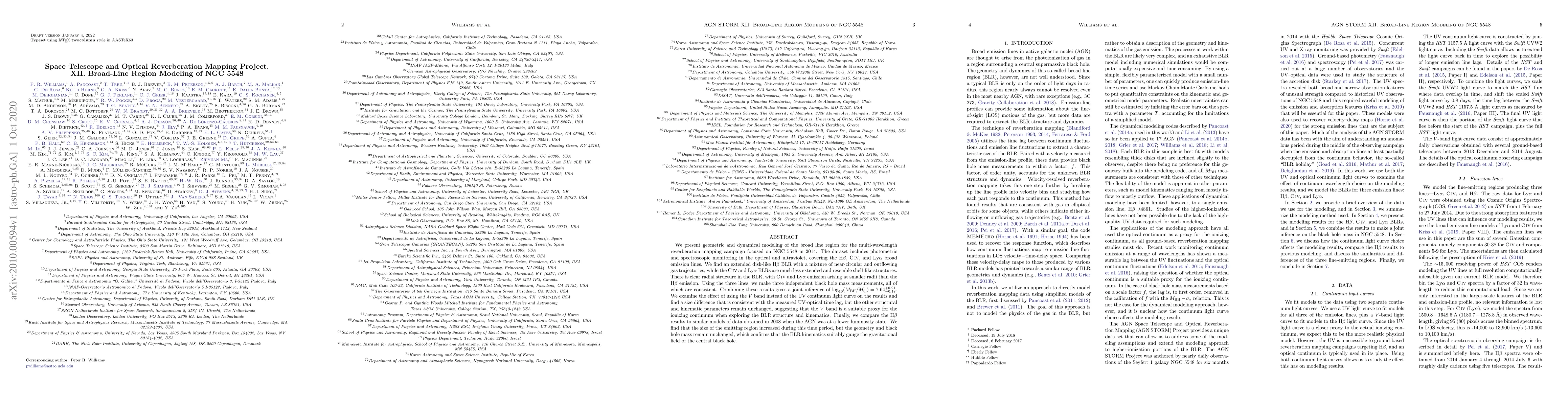 This study models the broad line region (BLR) of NGC 5548 using optical and ultraviolet data from a 2014 reverberation mapping campaign, finding an extended disk-like H$\beta$ BLR and more compact shell-like C IV and Ly$\alpha$ BLRs. The research yields a consistent black hole mass estimate of $\log_{10}(M_{\rm BH}/M_\odot) = 7.64^{+0.21}_{-0.18}$ and confirms the suitability of the $V$ band as a proxy for the ionizing continuum.