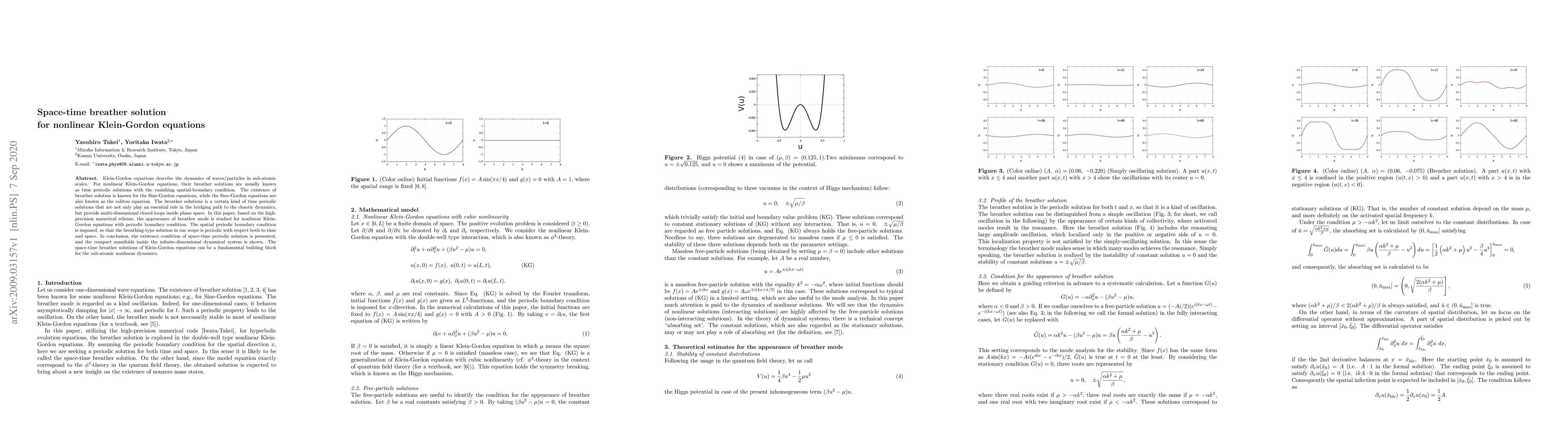 This paper investigates breather solutions—time periodic solutions with vanishing spatial boundary conditions—for nonlinear Klein-Gordon equations using high-precision numerical methods. It demonstrates the existence of space-time periodic solutions under spatial periodic boundary conditions, revealing compact manifolds within the infinite-dimensional dynamical system.