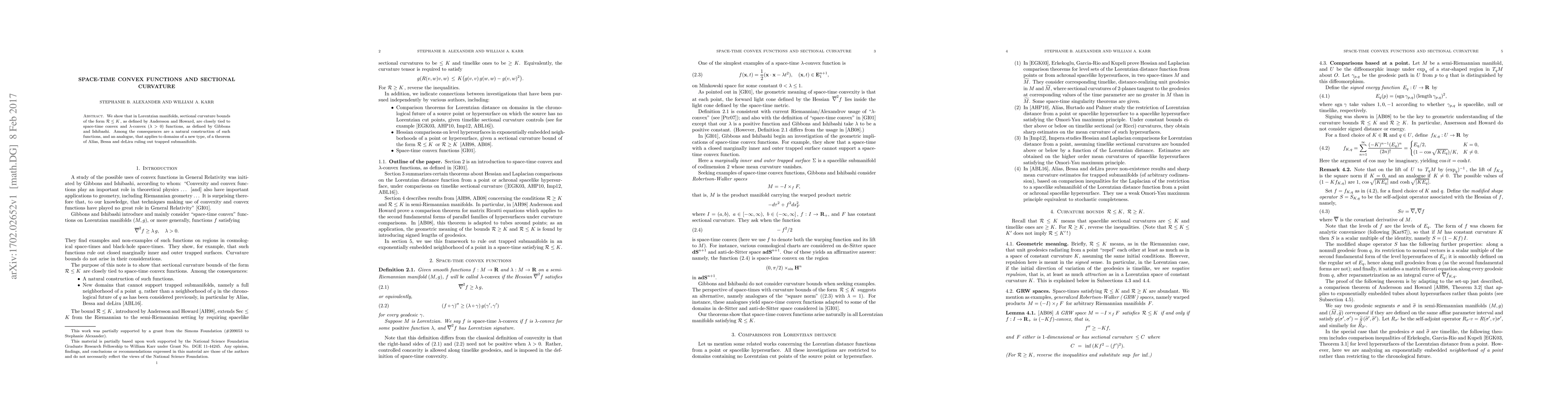 We show that in Lorentzian manifolds, sectional curvature bounds of the form $\mathcal{R}\le K\,$, as defined by Andersson and Howard, are closely tied to space-time convex and $\lambda$-convex ($\lambda>0$) functions, as defined by Gibbons and Ishibashi. Among the consequences are a natural construction of such functions, and an analogue, that applies to domains of a new type, of a theorem of Al\'ias, Bessa and deLira ruling out trapped submanifolds.