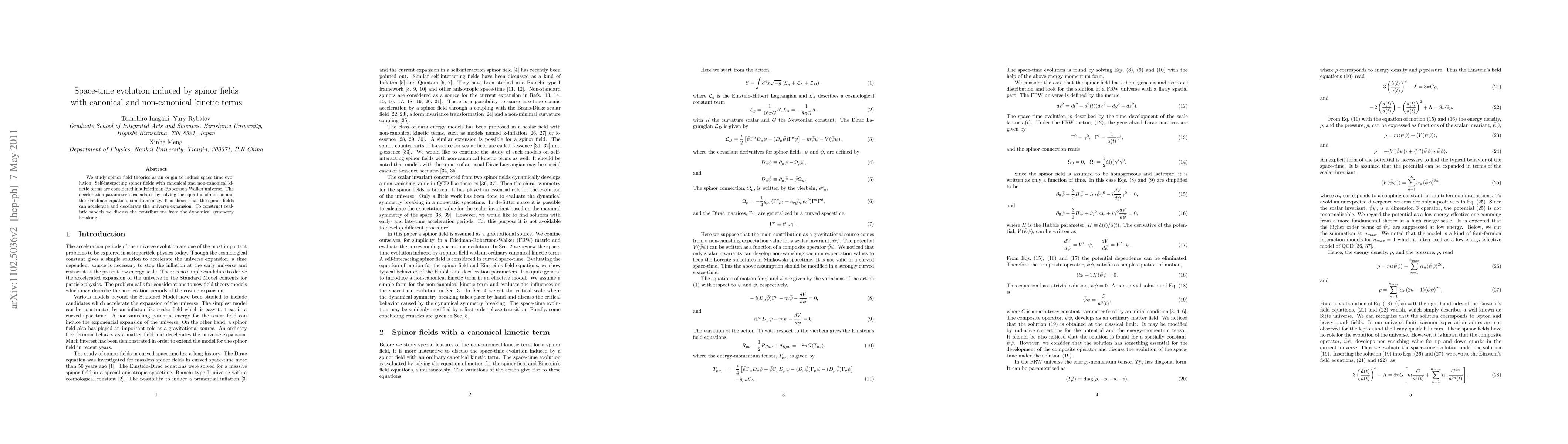 We study spinor field theories as an origin to induce space-time evolution. Self-interacting spinor fields with canonical and non-canonical kinetic terms are considered in a Friedman-Robertson-Walker universe. The deceleration parameter is calculated by solving the equation of motion and the Friedman equation, simultaneously. It is shown that the spinor fields can accelerate and decelerate the universe expansion. To construct realistic models we discuss the contributions from the dynamical symmetry breaking.