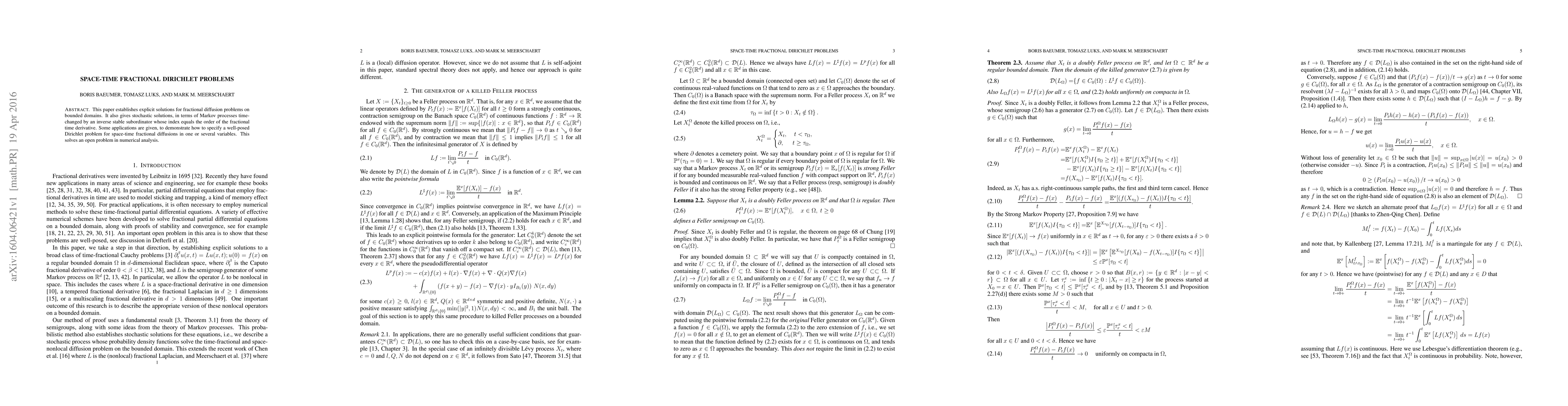 This research provides explicit solutions for space-time fractional diffusion equations within bounded areas, using stochastic processes linked to random time changes. It addresses a key open problem in numerical analysis and helps better understand complex diffusion behaviors.