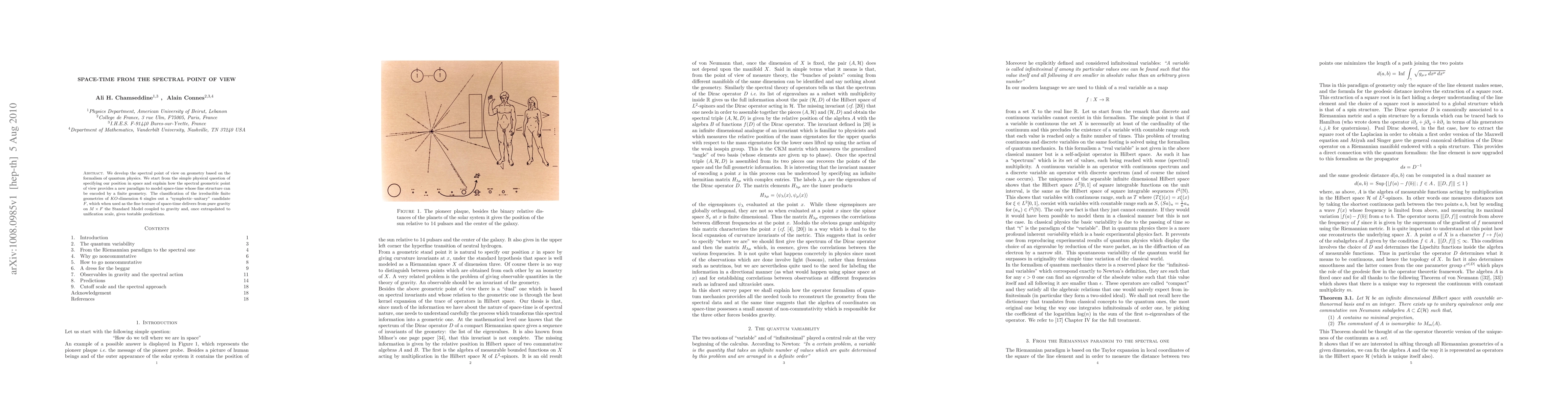 We develop the spectral point of view on geometry based on the formalism of quantum physics. We start from the simple physical question of specifying our position in space and explain how the spectral geometric point of view provides a new paradigm to model space-time whose fine structure can be encoded by a finite geometry. The classification of the irreducible finite geometries of KO-dimension 6 singles out a ``symplectic--unitary" candidate F, which when used as the fine texture of space-time delivers from pure gravity on M x F the Standard Model coupled to gravity and, once extrapolated to unification scale, gives testable predictions.