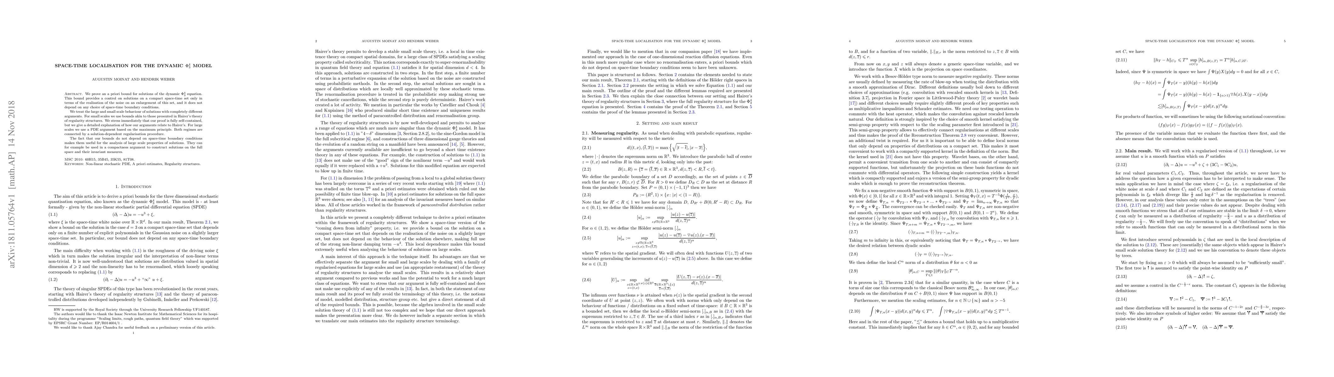Researchers prove a priori bounds for solutions of the dynamic $ u^4_3$ equation, connecting large-scale behavior with small-scale arguments and providing control over solutions without relying on space-time boundary conditions.