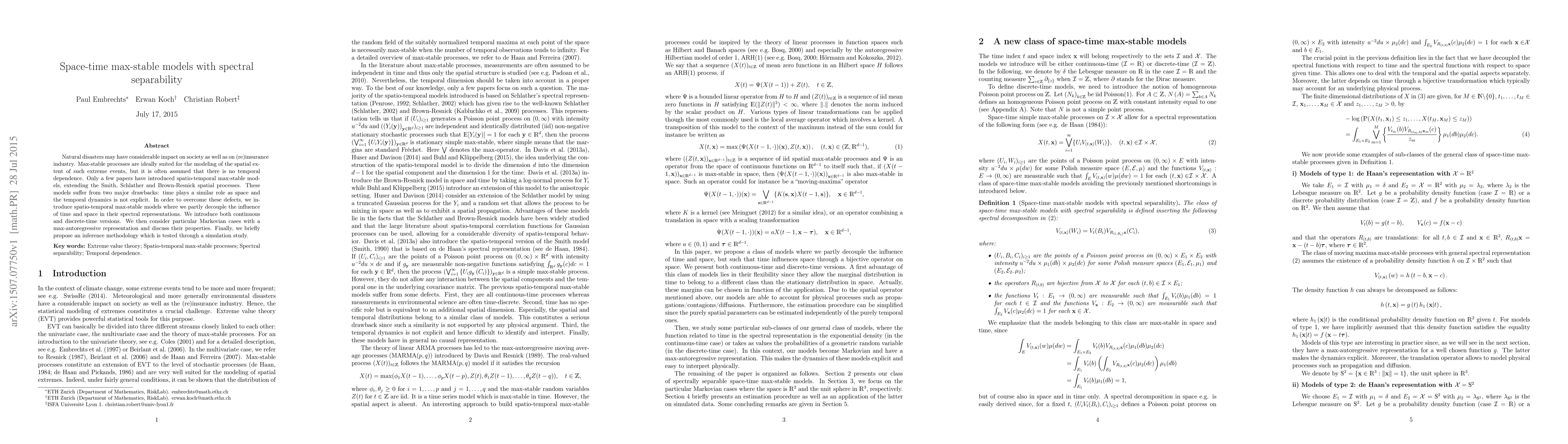 This paper introduces new spatio-temporal max-stable models that decouple time and space influences in their spectral representations, addressing the limitations of existing models. It proposes continuous and discrete-time versions, explores Markovian cases, and suggests an inference methodology validated through simulations.