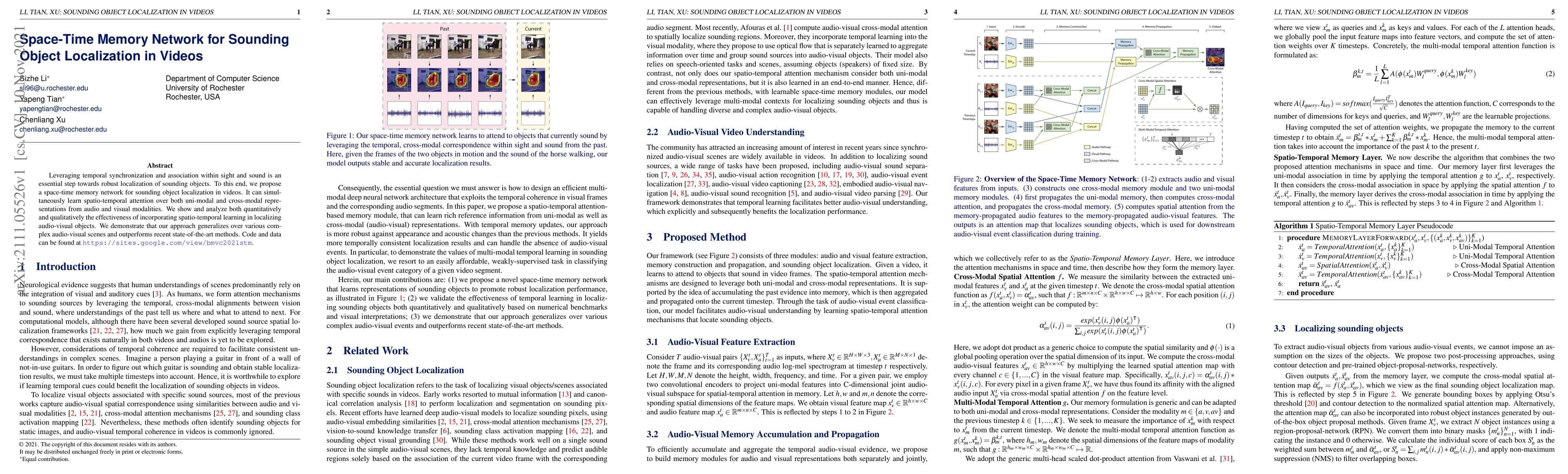 This paper proposes a space-time memory network to enhance the localization of sounding objects in videos by leveraging temporal synchronization and association between sight and sound. The network effectively learns spatio-temporal attention from both audio and visual data, outperforming recent state-of-the-art methods in complex audio-visual scenarios.