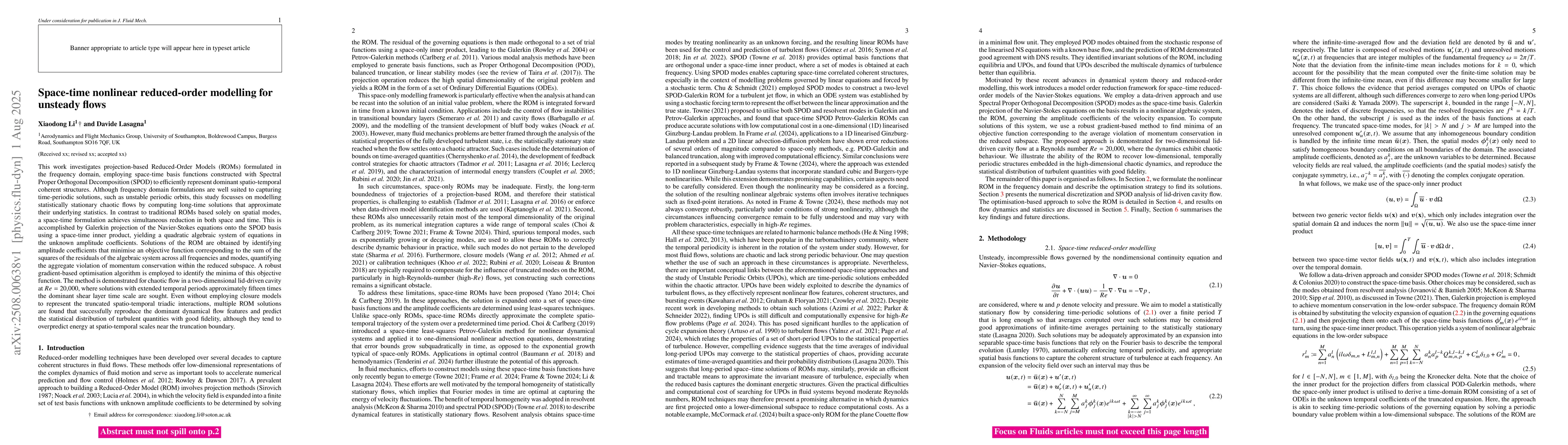 This work investigates projection-based Reduced-Order Models (ROMs) formulated in the frequency domain, employing a space-time basis constructed with Spectral Proper Orthogonal Decomposition to efficiently represent dominant spatio-temporal coherent structures. Although frequency domain formulations are well suited to capturing time-periodic solutions, such as unstable periodic orbits, this study focusses on modelling statistically stationary flows by computing long-time solutions that approximate their underlying statistics. In contrast to traditional ROMs based solely on spatial modes, a space-time formulation achieves simultaneous reduction in both space and time. This is accomplished by Galerkin projection of the Navier-Stokes equations onto the basis using a space-time inner product, yielding a quadratic algebraic system of equations in the unknown amplitude coefficients. Solutions of the ROM are obtained by identifying amplitude coefficients that minimise an objective function corresponding to the sum of the squares of the residuals of the algebraic system across all frequencies and modes, quantifying the aggregate violation of momentum conservation within the reduced subspace. A robust gradient-based optimisation algorithm is employed to identify the minima of this objective function. The method is demonstrated for chaotic flow in a two-dimensional lid-driven cavity at $Re=20{,}000$, where solutions with extended temporal periods approximately fifteen times the dominant shear layer time scale are sought. Even without employing closure models to represent the truncated spatio-temporal triadic interactions, multiple ROM solutions are found that successfully reproduce the dominant dynamical flow features and predict the statistical distribution of turbulent quantities with good fidelity, although they tend to overpredict energy at spatio-temporal scales near the truncation boundary.