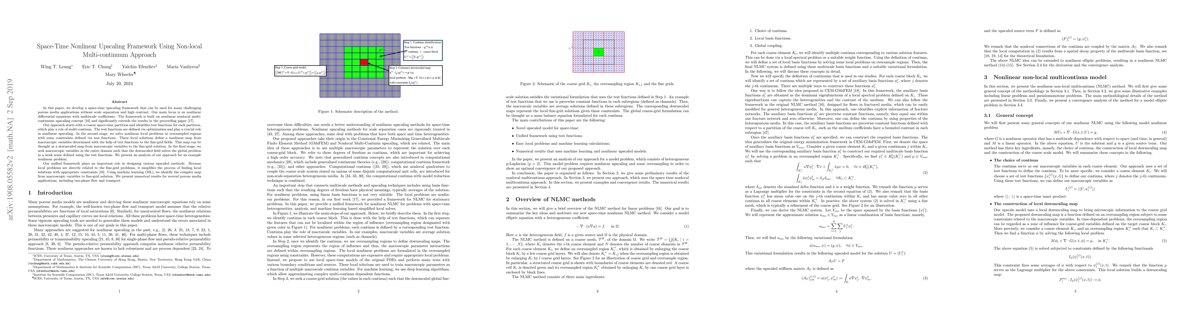 This paper introduces a space-time nonlinear upscaling framework based on nonlocal multi-continuum concepts, utilizing optimization-defined test functions for coarse space-time partitions to solve local problems and derive macroscopic variables. The framework simplifies upscaled method design and is demonstrated through numerical results for porous media applications.
