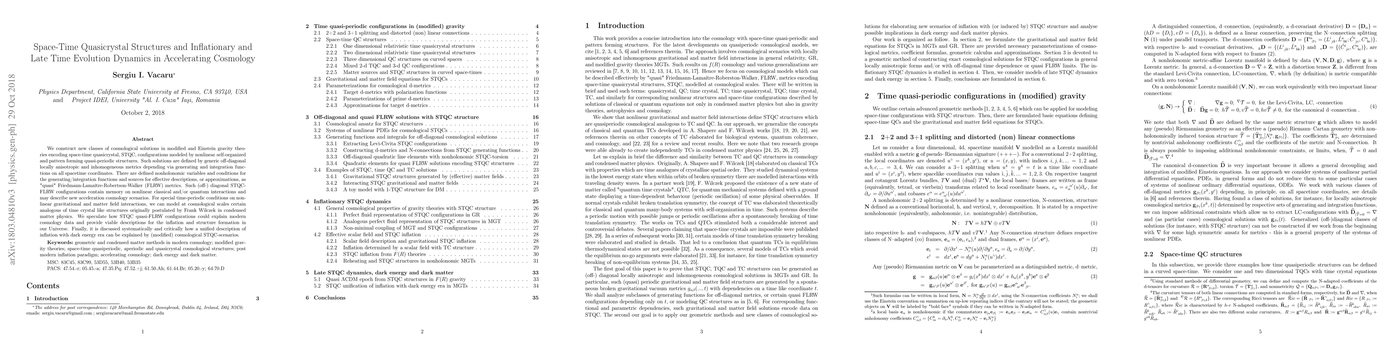 Researchers develop new cosmological solutions modeling space-time quasicrystal structures that may explain modern cosmology data and provide viable descriptions for inflation and structure formation in the Universe.