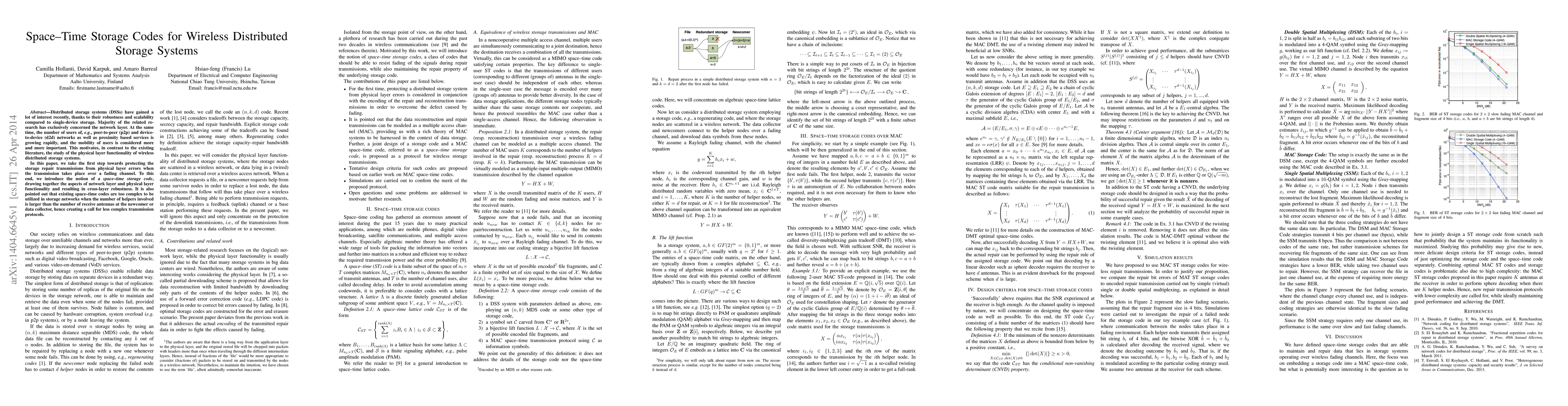Distributed storage systems (DSSs) have gained a lot of interest recently, thanks to their robustness and scalability compared to single-device storage. Majority of the related research has exclusively concerned the network layer. At the same time, the number of users of, e.g., peer-to-peer (p2p) and device-to-device (d2d) networks as well as proximity based services is growing rapidly, and the mobility of users is considered more and more important. This motivates, in contrast to the existing literature, the study of the physical layer functionality of wireless distributed storage systems. In this paper, we take the first step towards protecting the storage repair transmissions from physical layer errors when the transmission takes place over a fading channel. To this end, we introduce the notion of a space-time storage code, drawing together the aspects of network layer and physical layer functionality and resulting in cross-layer robustness. It is also pointed out that existing space-time codes are too complex to be utilized in storage networks when the number of helpers involved is larger than the number of receive antennas at the newcomer or data collector, hence creating a call for less complex transmission protocols.