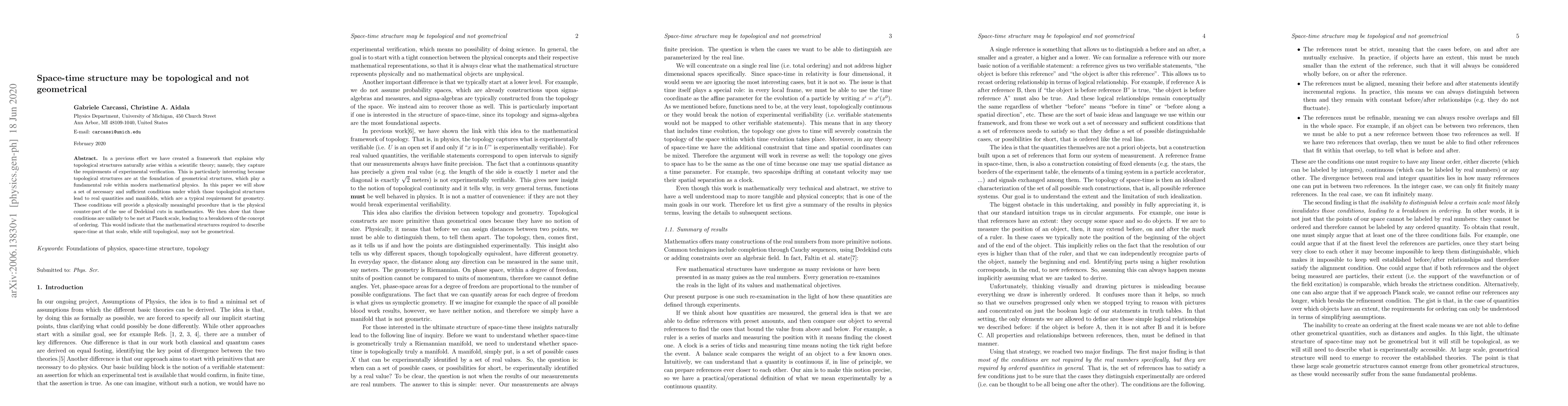 In a previous effort [arXiv:1708.05492] we have created a framework that explains why topological structures naturally arise within a scientific theory; namely, they capture the requirements of experimental verification. This is particularly interesting because topological structures are at the foundation of geometrical structures, which play a fundamental role within modern mathematical physics. In this paper we will show a set of necessary and sufficient conditions under which those topological structures lead to real quantities and manifolds, which are a typical requirement for geometry. These conditions will provide a physically meaningful procedure that is the physical counter-part of the use of Dedekind cuts in mathematics. We then show that those conditions are unlikely to be met at Planck scale, leading to a breakdown of the concept of ordering. This would indicate that the mathematical structures required to describe space-time at that scale, while still topological, may not be geometrical.