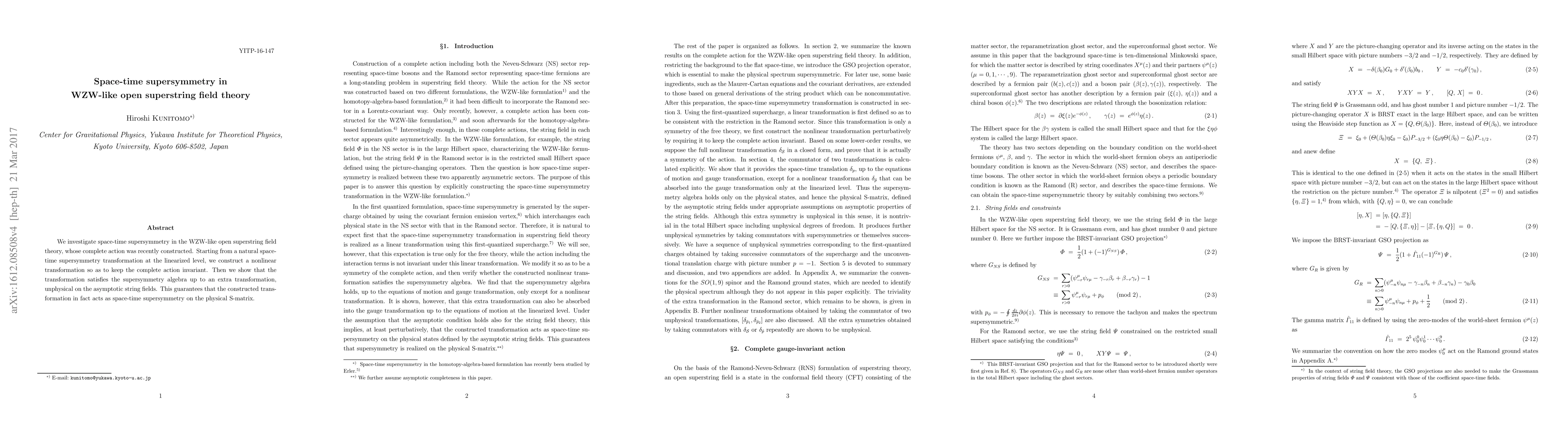 The paper constructs a nonlinear space-time supersymmetry transformation for WZW-like open superstring field theory to maintain action invariance and shows it satisfies the supersymmetry algebra, ensuring its validity on the physical S-matrix. The extra transformation is deemed unphysical on asymptotic string fields.