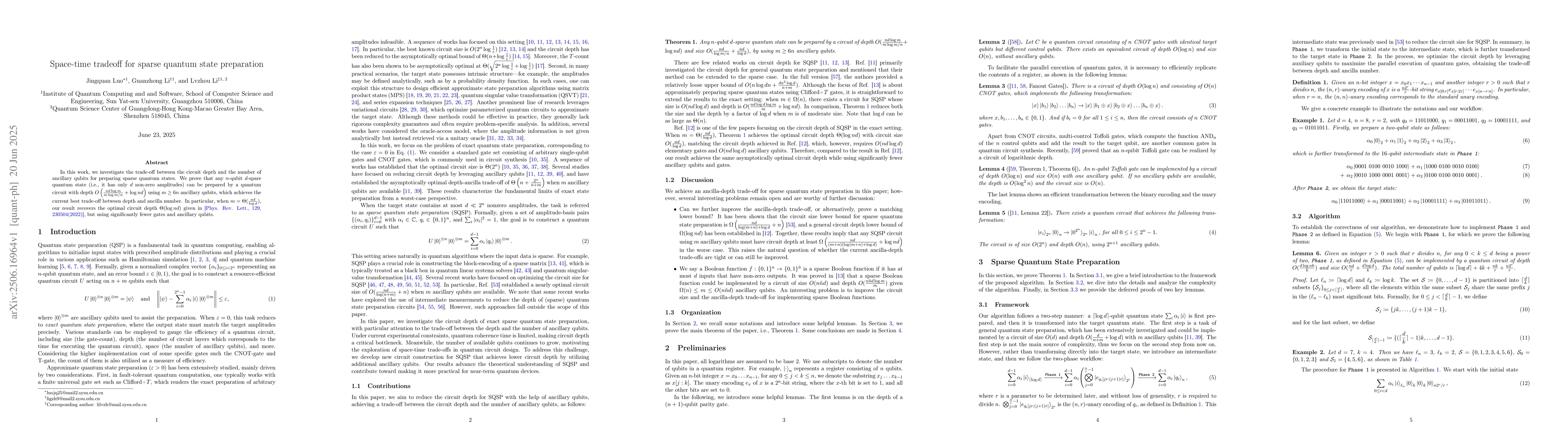 In this work, we investigate the trade-off between the circuit depth and the number of ancillary qubits for preparing sparse quantum states. We prove that any $n$-qubit $d$-spare quantum state (i.e., it has only $d$ non-zero amplitudes) can be prepared by a quantum circuit with depth $O\left(\frac{nd \log m}{m \log m/n} + \log nd\right)$ using $m\geq 6n$ ancillary qubits, which achieves the current best trade-off between depth and ancilla number. In particular, when $m = \Theta({\frac{nd}{\log d}})$, our result recovers the optimal circuit depth $\Theta(\log nd)$ given in \hyperlink{cite.zhang2022quantum}{[Phys. Rev. Lett., 129, 230504(2022)]}, but using significantly fewer gates and ancillary qubits.