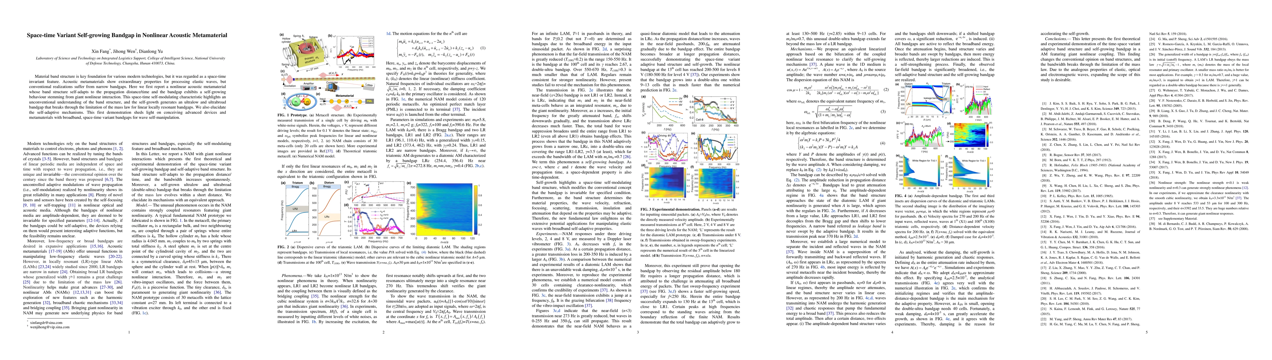 This paper introduces a nonlinear acoustic metamaterial with a self-growing bandgap that adapts over time and distance, driven by giant nonlinear interactions. This space-time variant bandgap breaks traditional limitations, offering ultralow and ultrabroad bandgaps for advanced wave manipulation devices.
