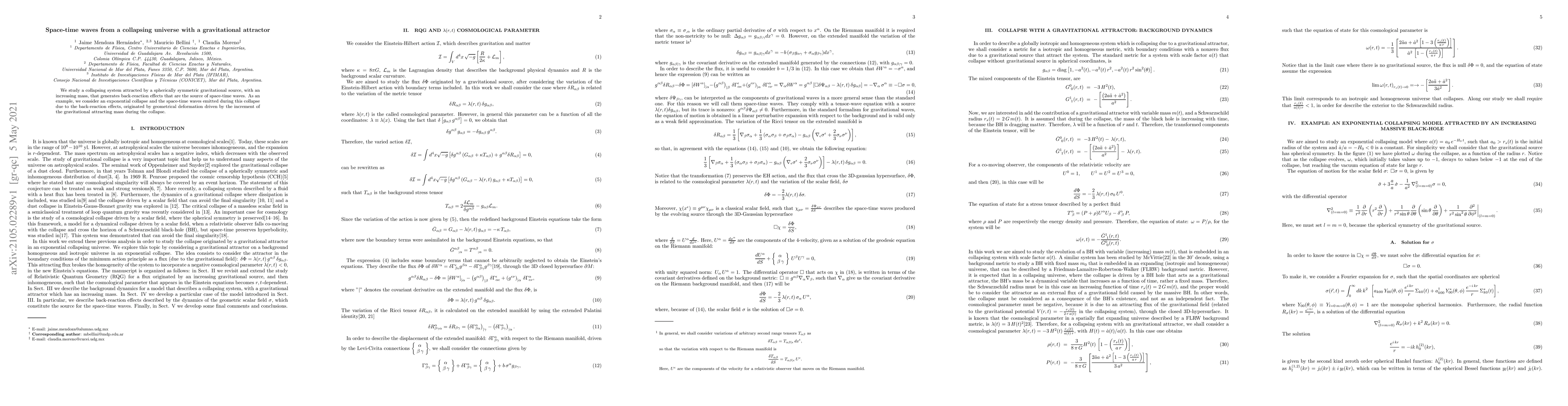 We study a collapsing system attracted by a spherically symmetric gravitational source, with an increasing mass, that generates back-reaction effects that are the source of space-time waves. As an example, we consider an exponential collapse and the space-time waves emitted during this collapse due to the back-reaction effects, originated by geometrical deformation driven by the increment of the gravitational attracting mass during the collapse.