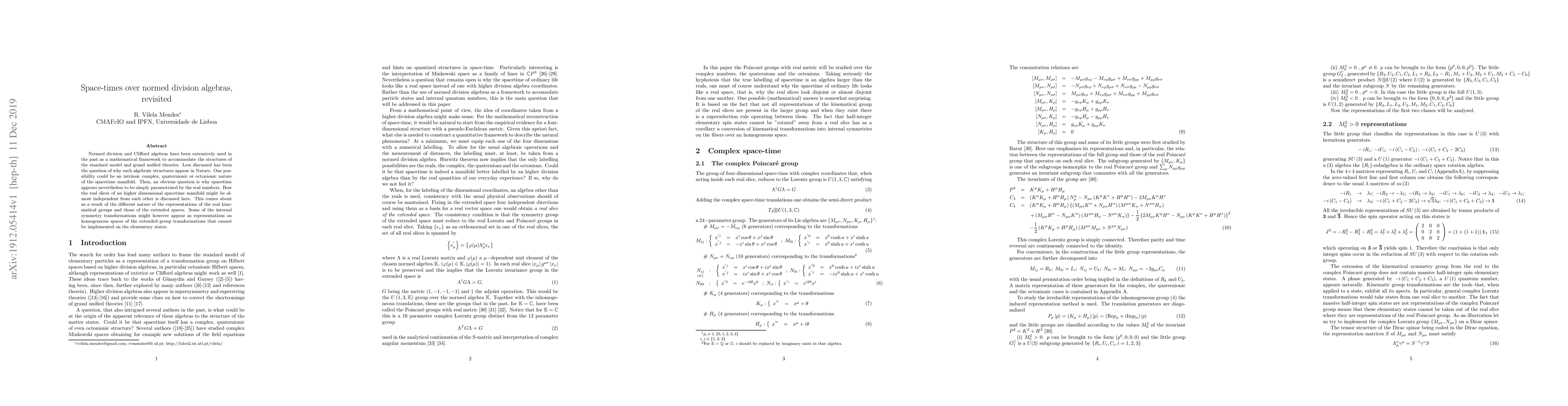 Normed division and Clifford algebras have been extensively used in the past as a mathematical framework to accommodate the structures of the standard model and grand unified theories. Less discussed has been the question of why such algebraic structures appear in Nature. One possibility could be an intrinsic complex, quaternionic or octonionic nature of the spacetime manifold. Then, an obvious question is why spacetime appears nevertheless to be simply parametrized by the real numbers. How the real slices of an higher dimensional spacetime manifold might be almost independent from each other is discussed here. This comes about as a result of the different nature of the representations of the real kinematical groups and those of the extended spaces. Some of the internal symmetry transformations might however appear as representations on homogeneous spaces of the extended group transformations that cannot be implemented on the elementary states.