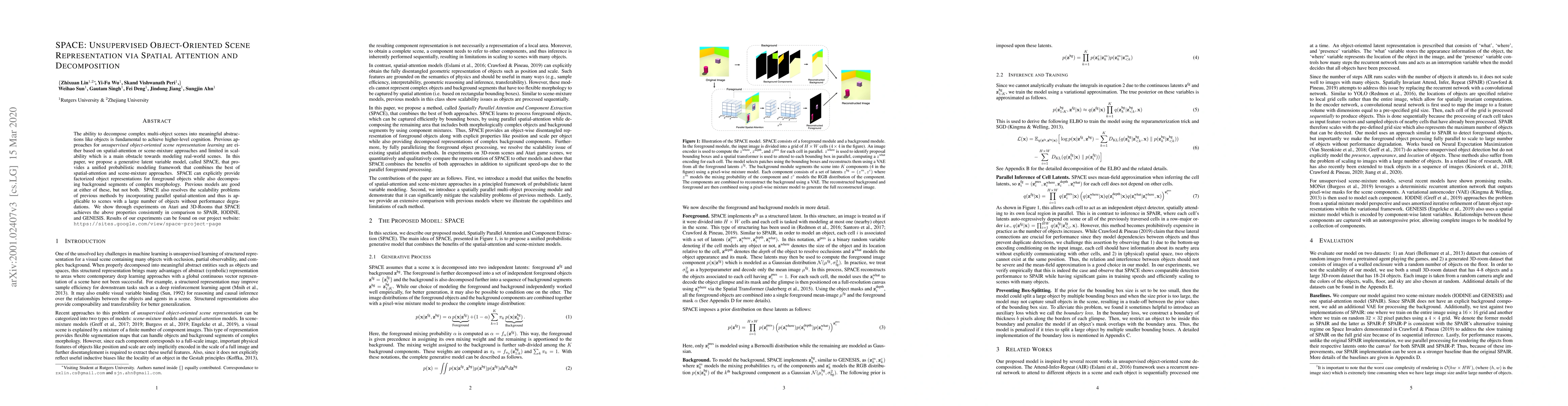 The paper introduces SPACE, a generative latent variable model that combines spatial-attention and scene-mixture approaches for unsupervised object-oriented scene representation, addressing scalability and providing factorized object representations. Experiments demonstrate SPACE's superior performance over existing methods on Atari and 3D-Rooms datasets.
