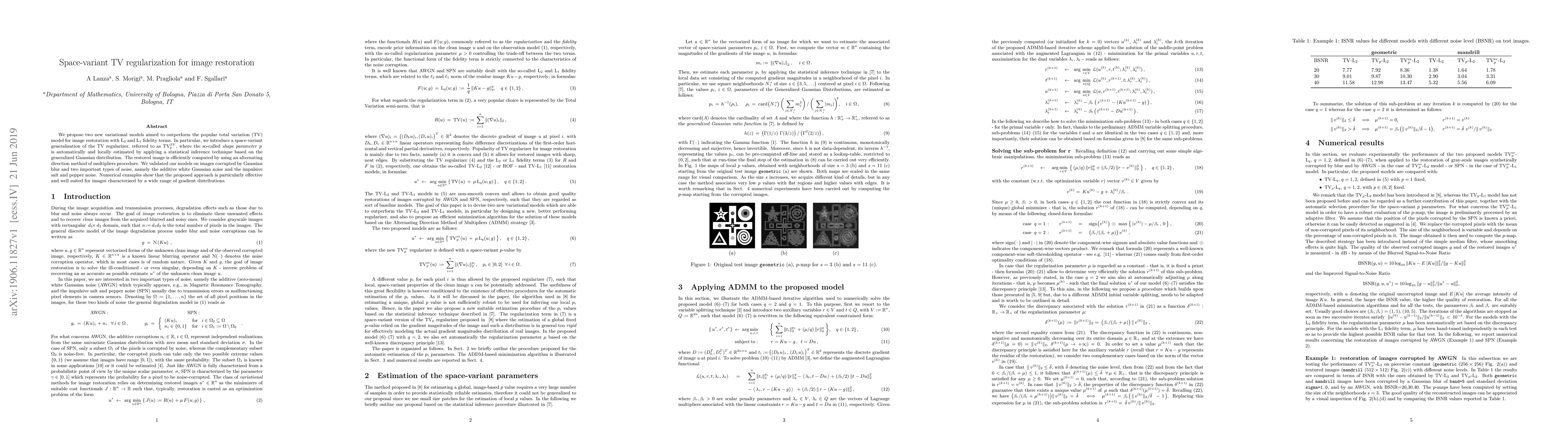 We propose two new variational models aimed to outperform the popular total variation (TV) model for image restoration with L$_2$ and L$_1$ fidelity terms. In particular, we introduce a space-variant generalization of the TV regularizer, referred to as TV$_p^{SV}$, where the so-called shape parameter $p\,$ is automatically and locally estimated by applying a statistical inference technique based on the generalized Gaussian distribution. The restored image is efficiently computed by using an alternating direction method of multipliers procedure. We validated our models on images corrupted by Gaussian blur and two important types of noise, namely the additive white Gaussian noise and the impulsive salt and pepper noise. Numerical examples show that the proposed approach is particularly effective and well suited for images characterized by a wide range of gradient distributions.
