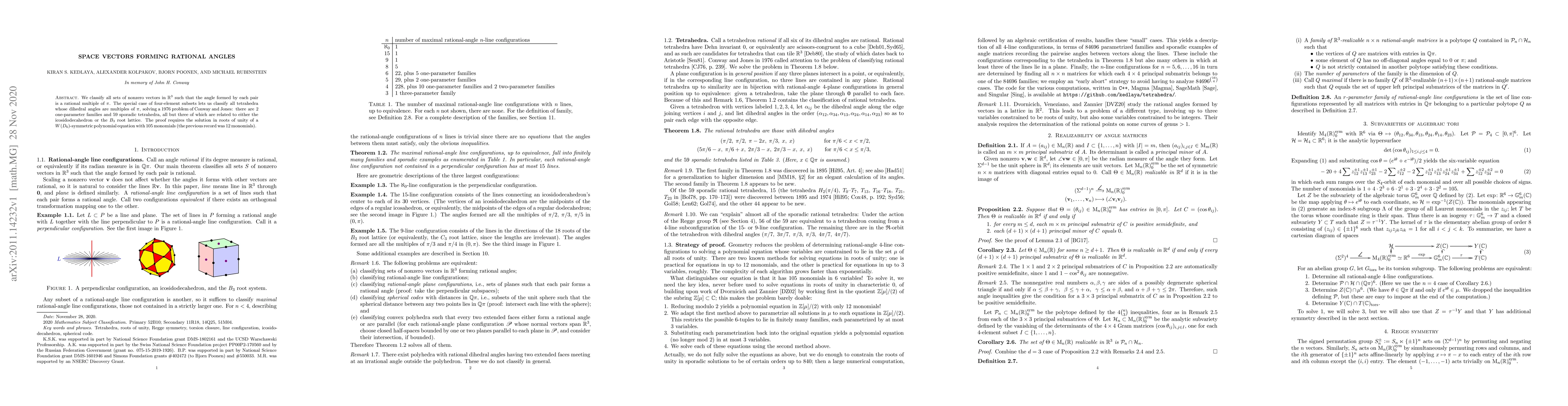 We classify all sets of nonzero vectors in $\mathbb{R}^3$ such that the angle formed by each pair is a rational multiple of $\pi$. The special case of four-element subsets lets us classify all tetrahedra whose dihedral angles are multiples of $\pi$, solving a 1976 problem of Conway and Jones: there are $2$ one-parameter families and $59$ sporadic tetrahedra, all but three of which are related to either the icosidodecahedron or the $B_3$ root lattice. The proof requires the solution in roots of unity of a $W(D_6)$-symmetric polynomial equation with $105$ monomials (the previous record was $12$ monomials).