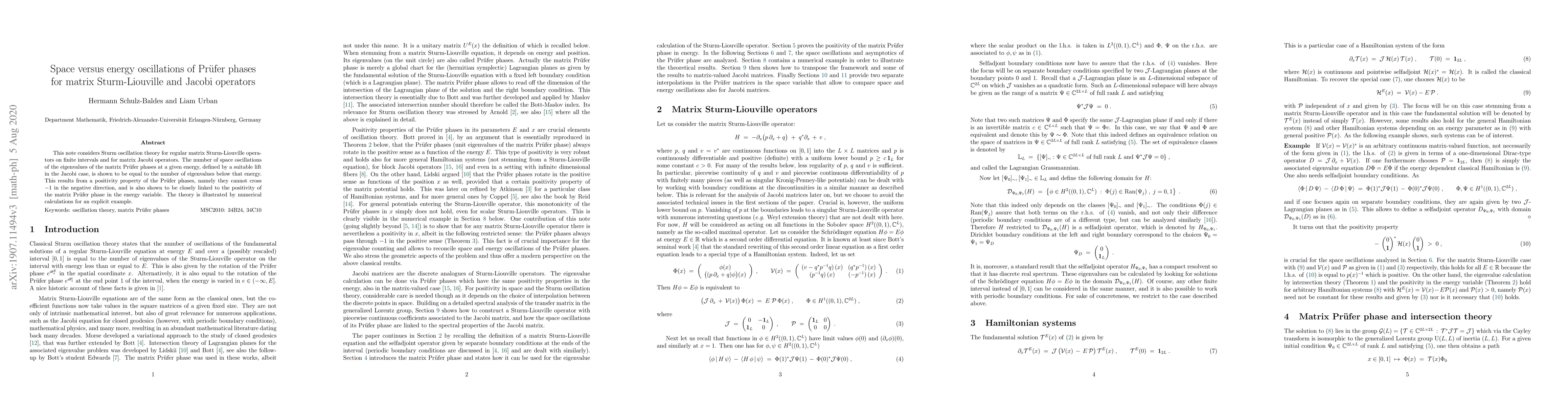 This paper explores Sturm oscillation theory for matrix Sturm-Liouville and Jacobi operators, demonstrating that the number of space oscillations of the matrix Pr\"ufer phases equals the number of eigenvalues below a given energy, due to the positivity property of these phases. Numerical examples illustrate the theoretical findings.
