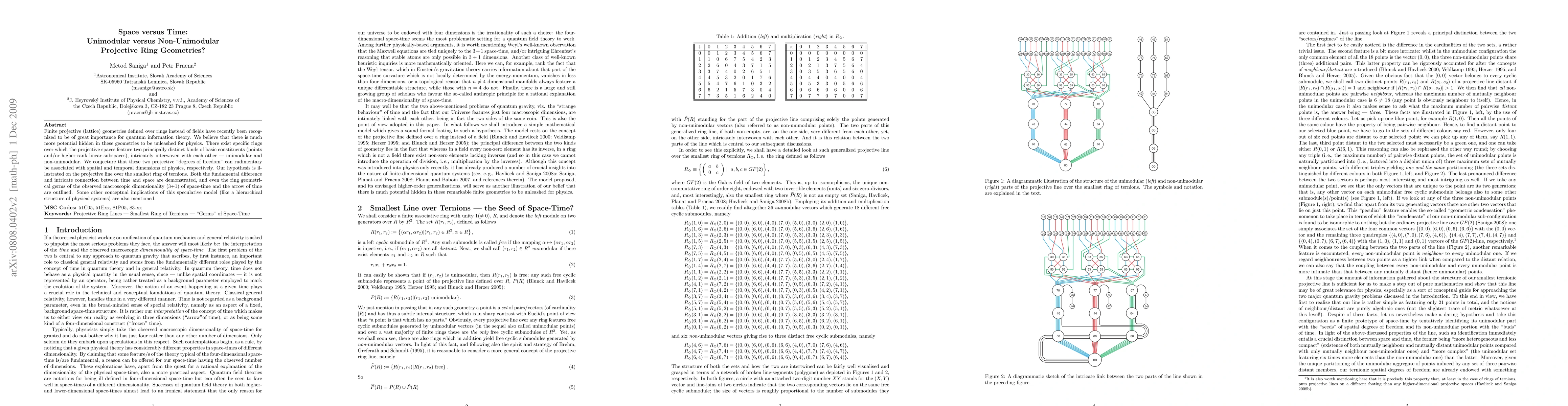Researchers explore how finite projective geometries over non-field rings can reveal new insights into space-time dimensions in physics, proposing a unimodular-non-unimodular association with spatial and temporal dimensions, respectively.