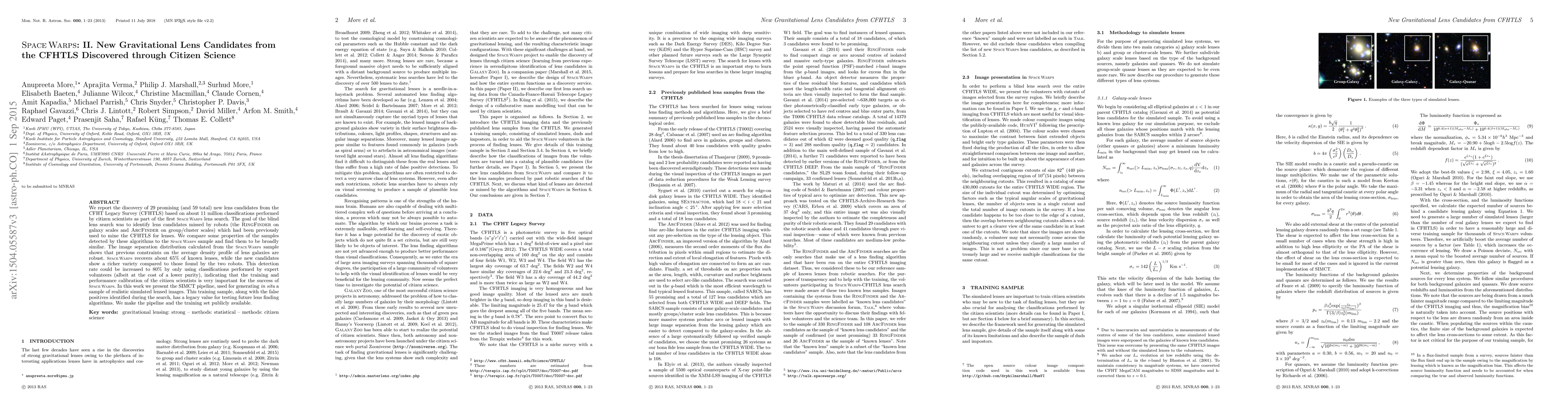 This paper reports the discovery of 29 promising new gravitational lens candidates from the CFHT Legacy Survey, identified through citizen science efforts in the Space Warps project. The project aims to find lenses missed by automated algorithms, demonstrating a detection rate of 65% of known lenses and a richer variety of candidates compared to those found by robots.
