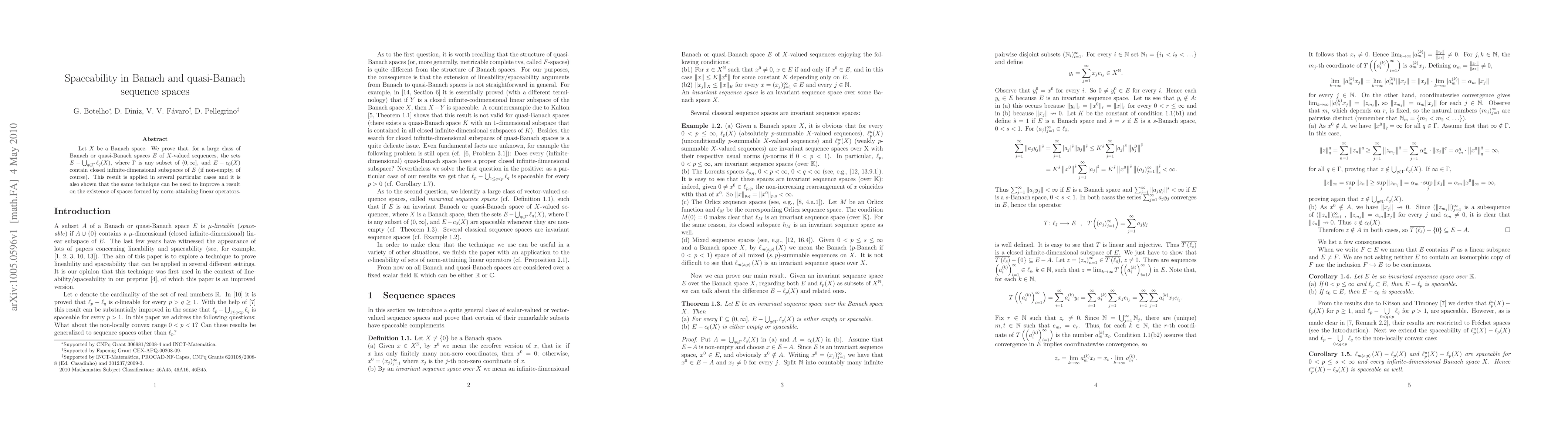 This paper proves that for many Banach and quasi-Banach sequence spaces $E$ of $X$-valued sequences, the sets $E-\bigcup_{q\in\Gamma}\ell_{q}(X)$ and $E-c_{0}(X)$ contain closed infinite-dimensional subspaces if non-empty. The technique is applied to specific cases and also enhances results on norm-attaining linear operators.