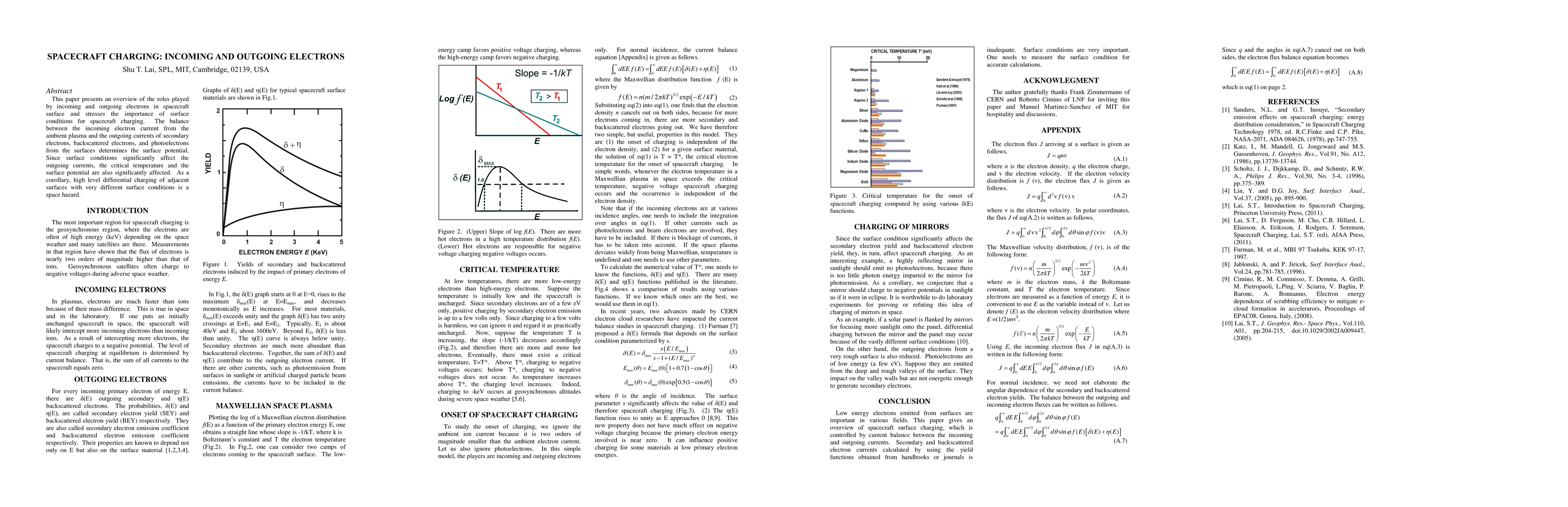 This paper presents an overview of the roles played by incoming and outgoing electrons in spacecraft surface and stresses the importance of surface conditions for spacecraft charging. The balance between the incoming electron current from the ambient plasma and the outgoing currents of secondary electrons, backscattered electrons, and photoelectrons from the surfaces determines the surface potential. Since surface conditions significantly affect the outgoing currents, the critical temperature and the surface potential are also significantly affected. As a corollary, high level differential charging of adjacent surfaces with very different surface conditions is a space hazard.