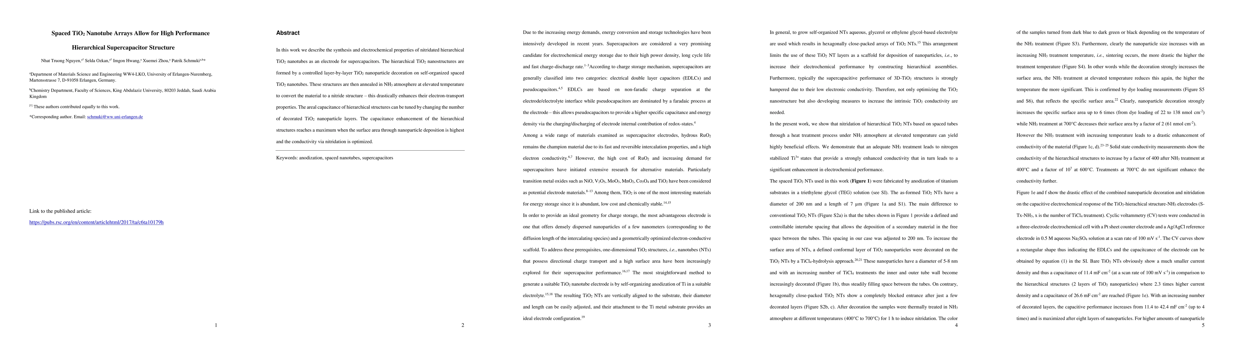 Researchers developed a new material with enhanced supercapacitor properties by decorating TiO2 nanotubes with nanoparticles and then converting them to a nitride structure, resulting in increased electron-transport and capacitance.