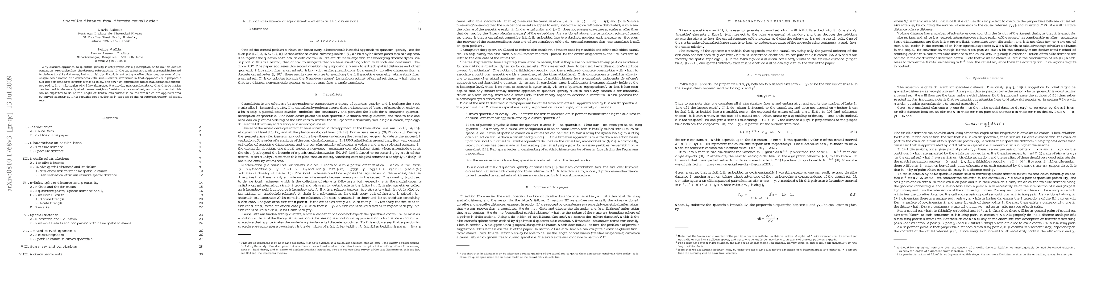 Any discrete approach to quantum gravity must provide some prescription as to how to deduce continuum properties from the discrete substructure. In the causal set approach it is straightforward to deduce timelike distances, but surprisingly difficult to extract spacelike distances, because of the unique combination of discreteness with local Lorentz invariance in that approach. We propose a number of methods to overcome this difficulty, one of which reproduces the spatial distance between two points in a finite region of Minkowski space. We provide numerical evidence that this definition can be used to define a `spatial nearest neighbor' relation on a causal set, and conjecture that this can be exploited to define the length of `continuous curves' in causal sets which are approximated by curved spacetime. This provides evidence in support of the ``Hauptvermutung'' of causal sets.
