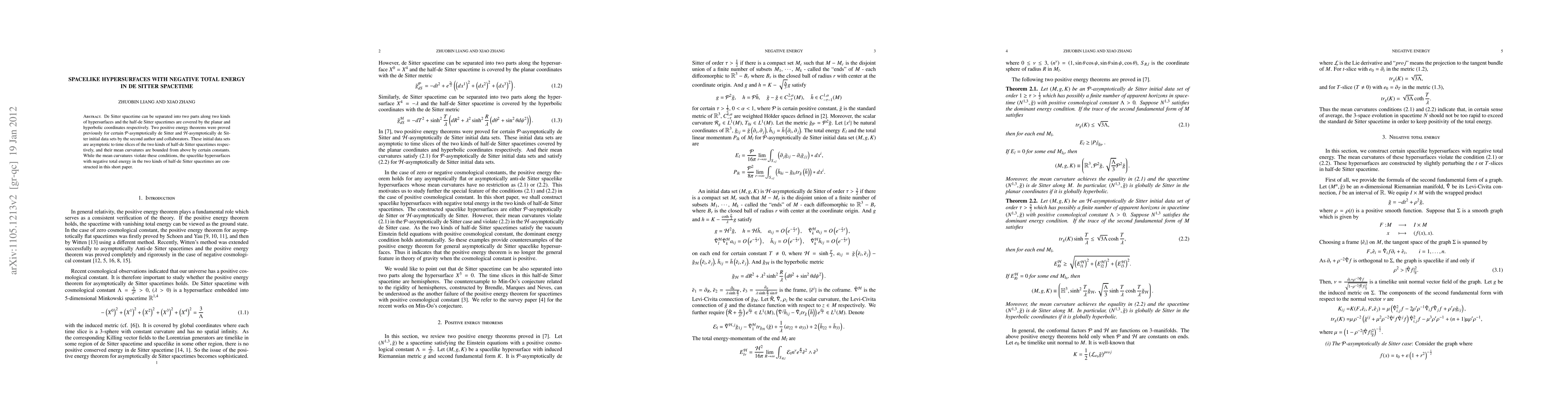 This paper constructs spacelike hypersurfaces with negative total energy in de Sitter spacetime, focusing on half-de Sitter spacetimes covered by planar and hyperbolic coordinates. Despite previous positive energy theorems for asymptotically de Sitter initial data sets, this work addresses the construction of such hypersurfaces where mean curvatures violate typical conditions.