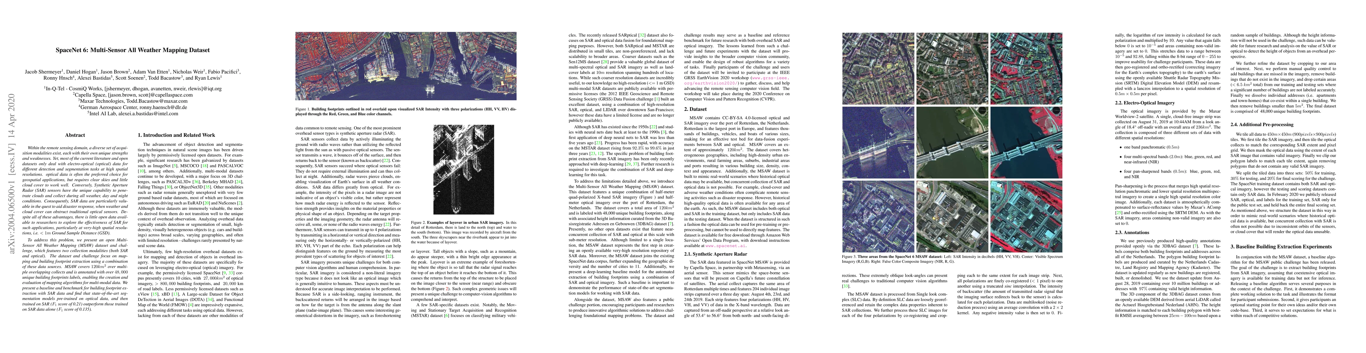 The research presents the SpaceNet 6 dataset, a multi-sensor all-weather mapping dataset, featuring both SAR and optical data for building footprint extraction. The dataset covers 120 km² with 48,000 unique building footprint labels, processed from SLC SAR data and WorldView-2 optical imagery.