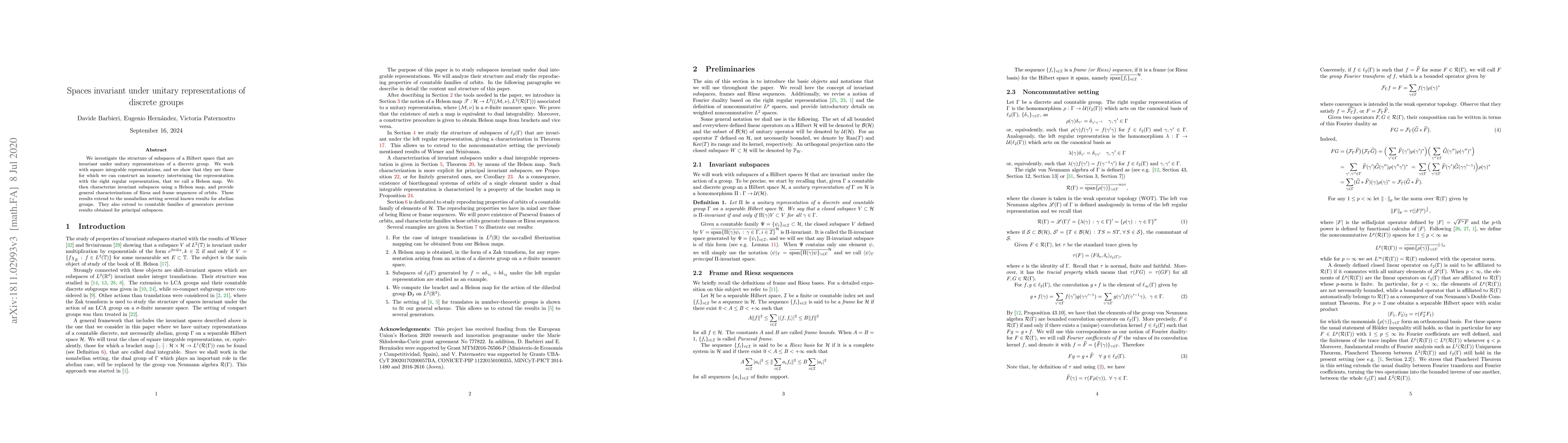 This paper investigates subspaces of a Hilbert space invariant under unitary representations of discrete groups, introducing a Helson map to characterize these spaces and extend known results.