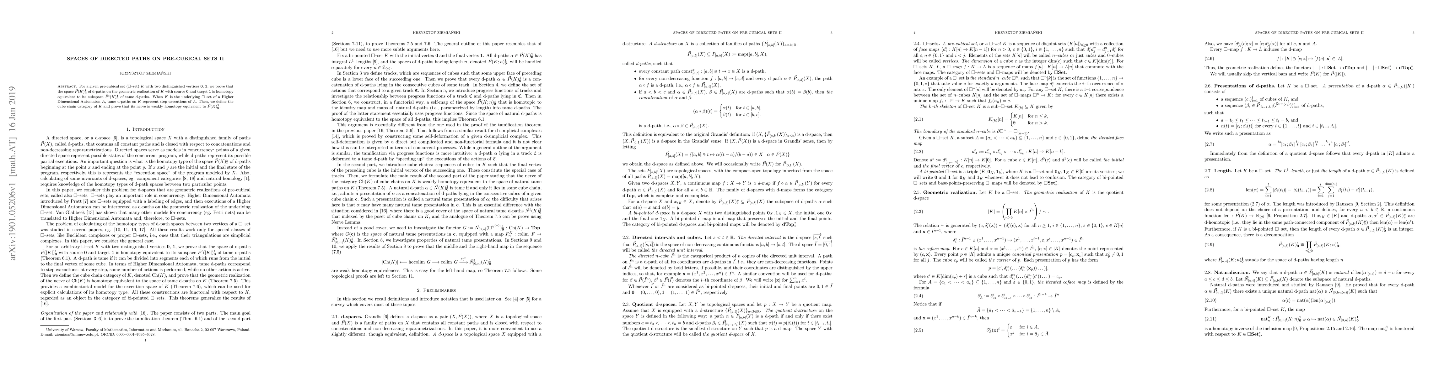 The paper introduces the cube chain category and proves homotopy equivalence between spaces of directed paths and tame directed paths on pre-cubical sets, along with establishing natural tame presentations for natural directed paths.