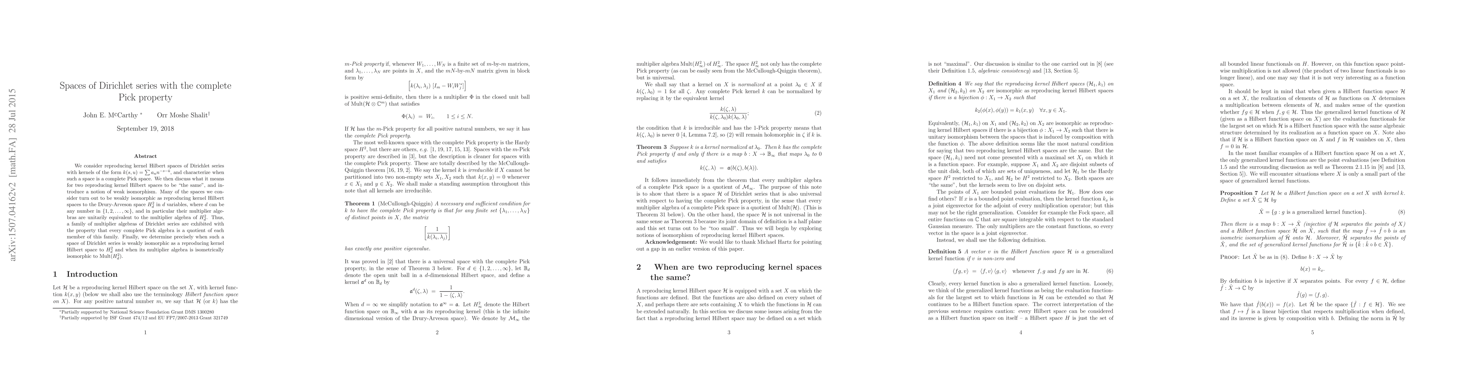 We consider reproducing kernel Hilbert spaces of Dirichlet series with kernels of the form $k(s,u) = \sum a_n n^{-s-\bar u}$, and characterize when such a space is a complete Pick space. We then discuss what it means for two reproducing kernel Hilbert spaces to be "the same", and introduce a notion of weak isomorphism. Many of the spaces we consider turn out to be weakly isomorphic as reproducing kernel Hilbert spaces to the Drury-Arveson space $H^2_d$ in $d$ variables, where $d$ can be any number in $\{1,2,\ldots, \infty\}$, and in particular their multiplier algebras are unitarily equivalent to the multiplier algebra of $H^2_d$. Thus, a family of multiplier algebras of Dirichlet series are exhibited with the property that every complete Pick algebra is a quotient of each member of this family. Finally, we determine precisely when such a space of Dirichlet series is weakly isomorphic to $H^2_d$ and when its multiplier algebra is isometrically isomorphic to $Mult(H^2_d)$.