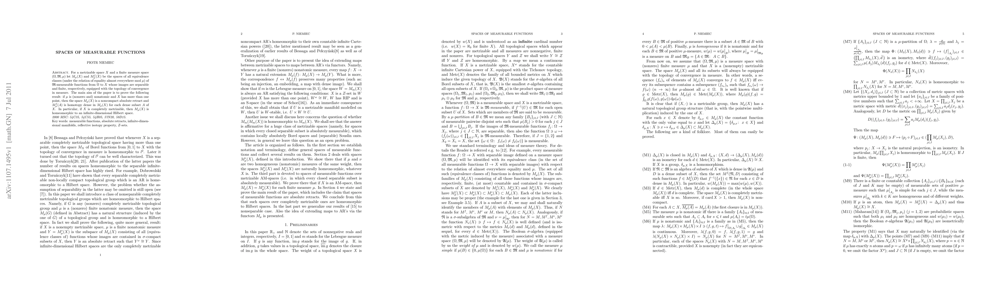 This research paper explores properties of spaces of measurable functions over finite measure spaces and metrizable spaces, proving they are absolute retracts with specific homotopy density properties.