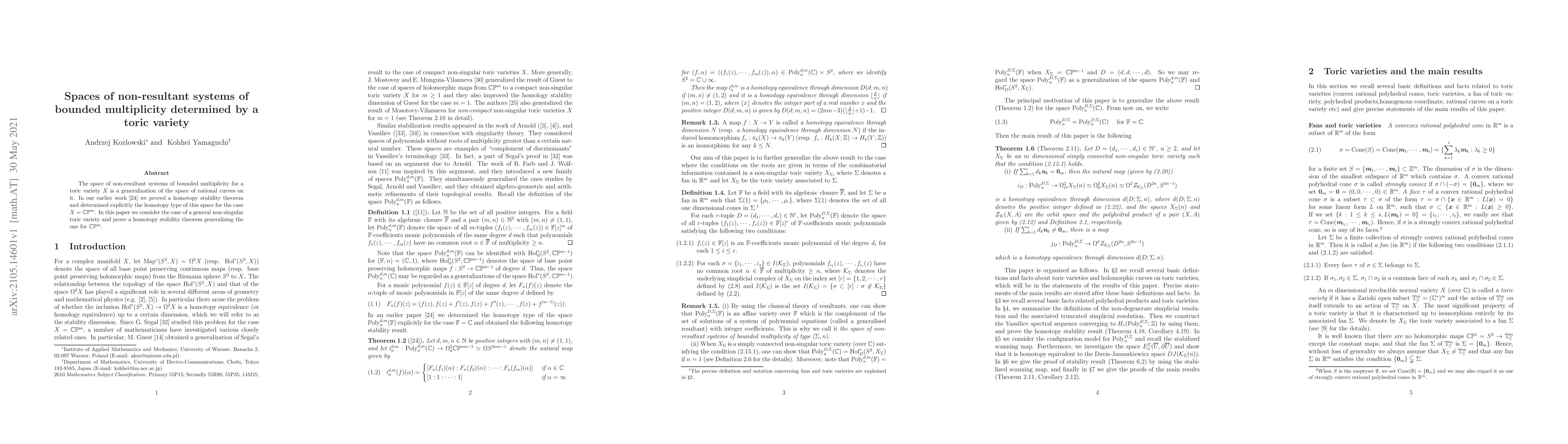 The space of non-resultant systems of bounded multiplicity for a toric variety X is a generalization of the space of rational curves on it. In our earlier work we proved a homotopy stability theorem and determined explicitly the homotopy type of this space for the case X = CP^m. In this paper we consider the case of a general non-singular toric variety and prove a homotopy stability theorem generalising the one for CP^m.