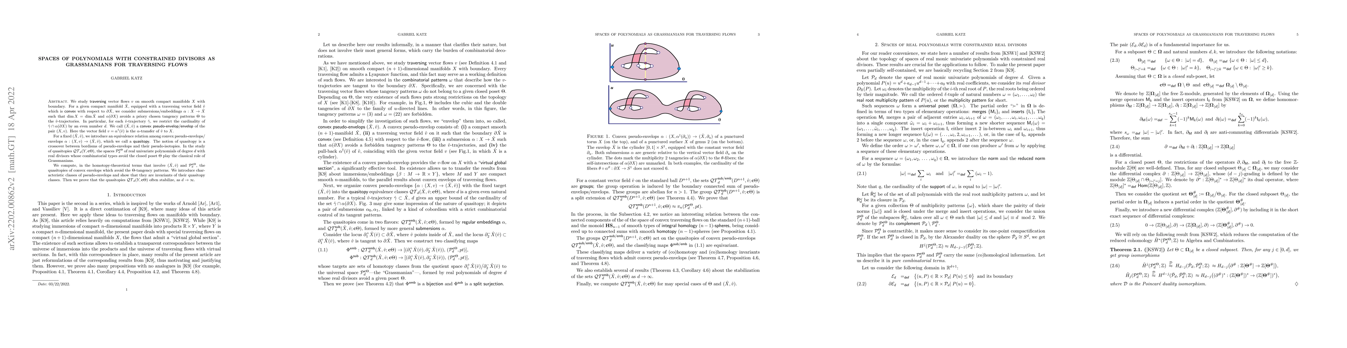 This research paper studies traversing vector flows on compact manifolds and introduces a mathematical concept called quasitopy to classify spaces of polynomials with constrained divisors, providing insights into the behavior of these spaces as degree increases.