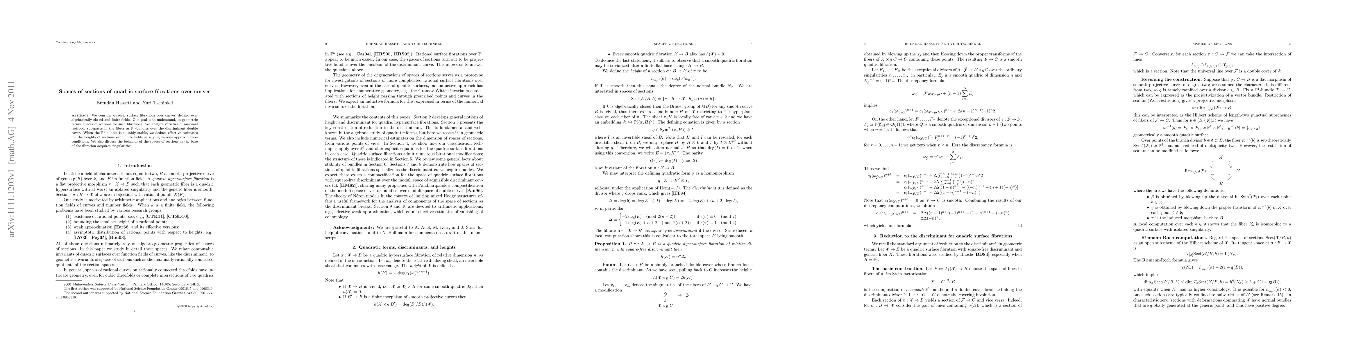 We consider quadric surface fibrations over curves, defined over algebraically closed and finite fields. Our goal is to understand, in geometric terms, spaces of sections for such fibrations. We analyze varieties of maximal isotropic subspaces in the fibers as P^1-bundles over the discriminant double cover. When the P^1-bundle is suitably stable, we deduce effective estimates for the heights of sections over finite fields satisfying various approximation conditions. We also discuss the behavior of the spaces of sections as the base of the fibration acquires singularities.
