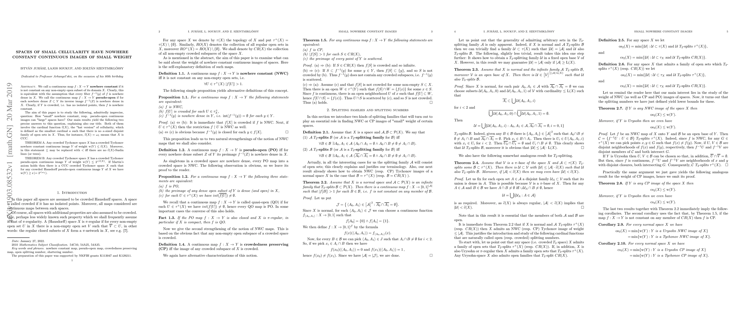 We call a continuous map $f : X \to Y$ nowhere constant if it is not constant on any non-empty open subset of its domain $X$. Clearly, this is equivalent with the assumption that every fiber $f^{-1}(y)$ of $f$ is nowhere dense in $X$. We call the continuous map $f : X \to Y$ pseudo-open if for each nowhere dense $Z \subset Y$ its inverse image $f^{-1}(Z)$ is nowhere dense in $X$. Clearly, if $Y$ is crowded, i.e. has no isolated points, then $f$ is nowhere constant. The aim of this paper is to study the following, admittedly imprecise, question: How "small" nowhere constant, resp. pseudo-open continuous images can "large" spaces have? Our main results yield the following two precise answers to this question, explaining also our title. Both of them involve the cardinal function $\widehat{c}(X)$, the "hat version" of cellularity, which is defined as the smallest cardinal $\kappa$ such that there is no $\kappa$-sized disjoint family of open sets in $X$. Thus, for instance, $\widehat{c}(X) = \omega_1$ means that $X$ is CCC. THEOREM A. Any crowded Tychonov space $X$ has a crowded Tychonov nowhere constant continuous image $Y$ of weight $w(Y) \le \widehat{c}(X)$. Moreover, in this statement $\le$ may be replaced with $<$ iff there are no $\widehat{c}(X)$-Suslin lines (or trees). THEOREM B. Any crowded Tychonov space $X$ has a crowded Tychonov pseudo-open continuous image $Y$ of weight $w(Y) \le 2^{<\widehat{c}(X)}$. If Martin's axiom holds then there is a CCC crowded Tychonov space $X$ such that for any crowded Hausdorff pseudo-open continuous image $Y$ of $X$ we have $w(Y) \ge \mathfrak{c}\,( = 2^{< \omega_1})$.