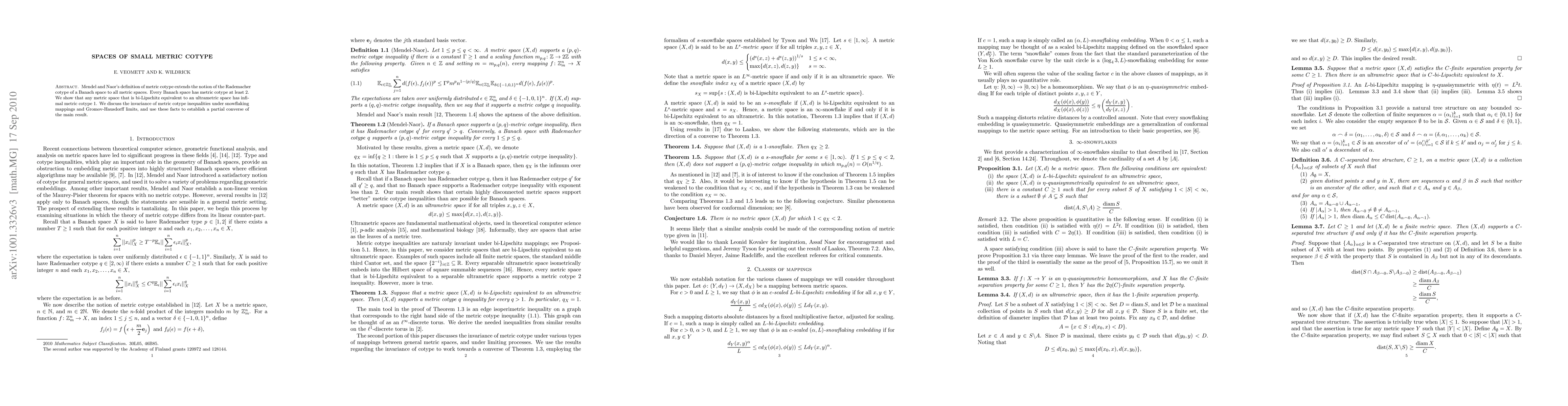 Summary: Naor and Mendel's metric cotype extends the Rademacher cotype to metric spaces, with any Banach space having cotype at least 2. The paper proves that bi-Lipschitz equivalent ultrametric spaces have minimal metric cotype 1, discusses the invariance of metric cotype under certain mappings, and establishes a partial converse to the main result.