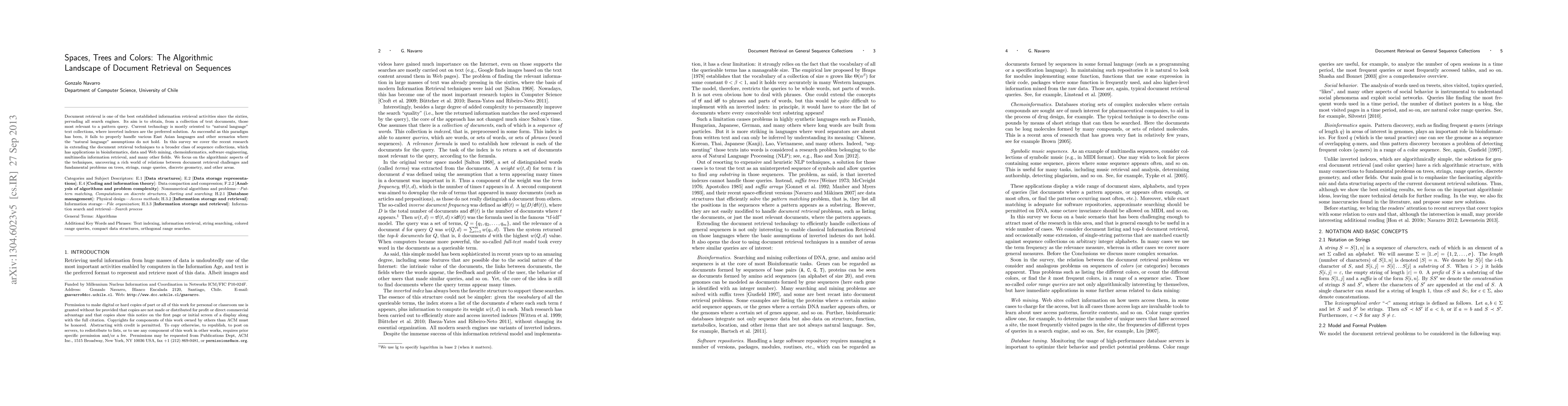 Document retrieval is one of the best established information retrieval activities since the sixties, pervading all search engines. Its aim is to obtain, from a collection of text documents, those most relevant to a pattern query. Current technology is mostly oriented to "natural language" text collections, where inverted indices are the preferred solution. As successful as this paradigm has been, it fails to properly handle some East Asian languages and other scenarios where the "natural language" assumptions do not hold. In this survey we cover the recent research in extending the document retrieval techniques to a broader class of sequence collections, which has applications bioinformatics, data and Web mining, chemoinformatics, software engineering, multimedia information retrieval, and many others. We focus on the algorithmic aspects of the techniques, uncovering a rich world of relations between document retrieval challenges and fundamental problems on trees, strings, range queries, discrete geometry, and others.