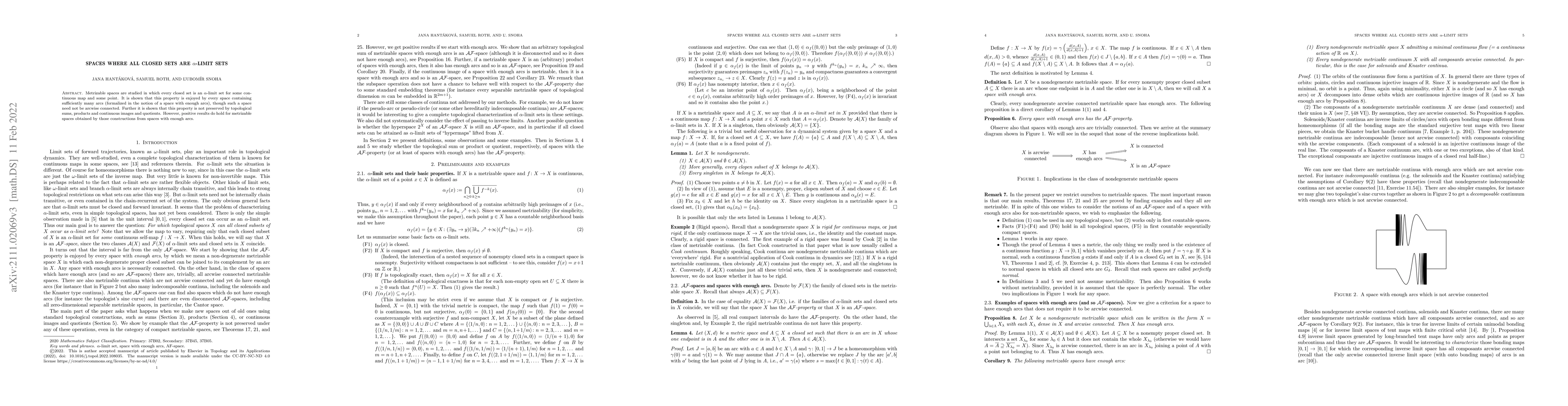 Metrizable spaces are studied in which every closed set is an $\alpha$-limit set for some continuous map and some point. It is shown that this property is enjoyed by every space containing sufficiently many arcs (formalized in the notion of a space with enough arcs), though such a space need not be arcwise connected. Further it is shown that this property is not preserved by topological sums, products and continuous images and quotients. However, positive results do hold for metrizable spaces obtained by those constructions from spaces with enough arcs.