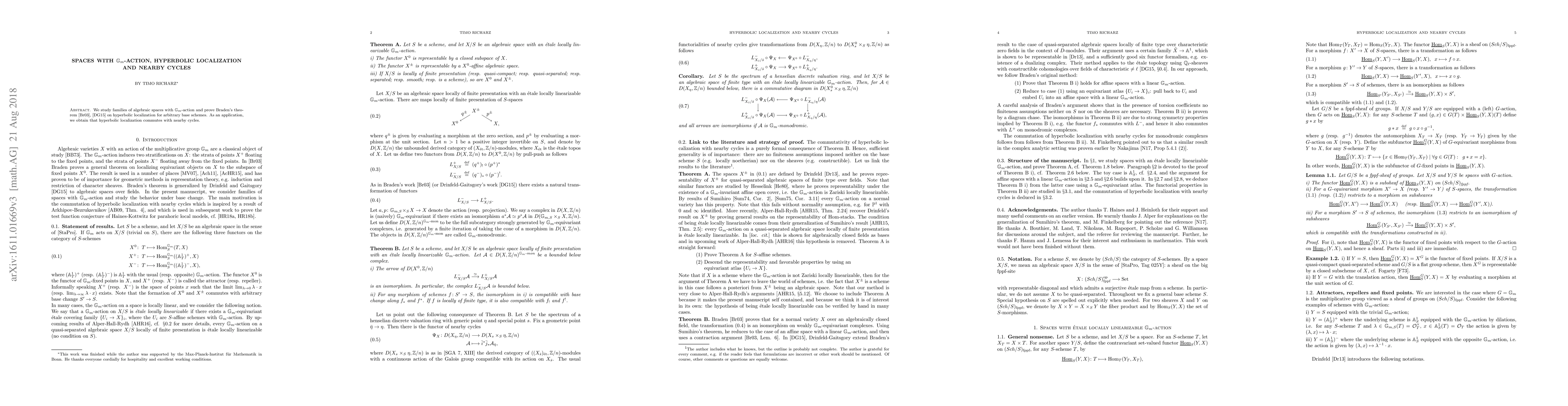Summary: This paper proves Braden's theorem on hyperbolic localization for algebraic spaces with a $\mathbb{G}_m$-action, establishing that hyperbolic localization commutes with nearby cycles in these settings.
