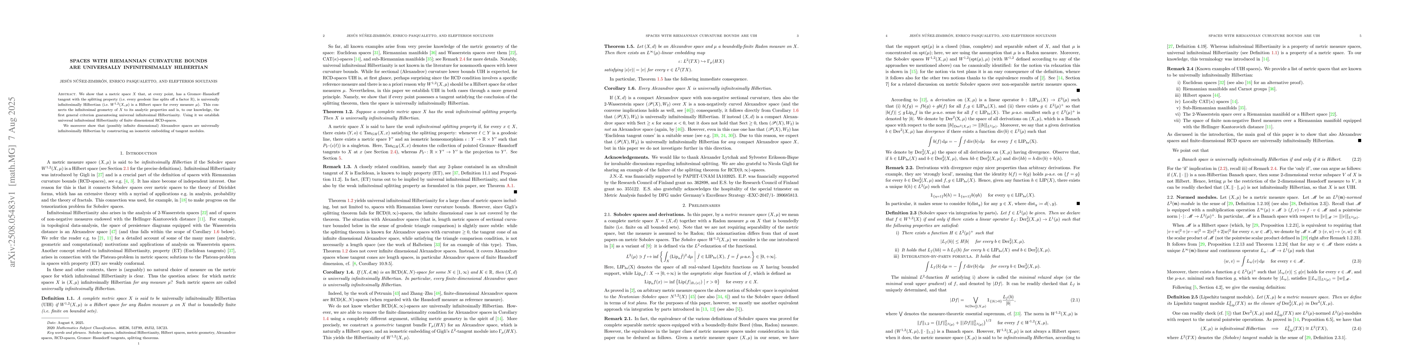 We show that a metric space $X$ that, at every point, has a Gromov-Hausdorff tangent with the splitting property (i.e. every geodesic line splits off a factor $\mathbb{R}$), is universally infinitesimally Hilbertian (i.e. $W^{1,2}(X,\mu)$ is a Hilbert space for every measure $\mu$). This connects the infinitesimal geometry of $X$ to its analytic properties and is, to our knowledge, the first general criterion guaranteeing universal infinitesimal Hilbertianity. Using it we establish universal infinitesimal Hilbertianity of finite dimensional RCD-spaces. We moreover show that (possibly infinite dimensional) Alexandrov spaces are universally infinitesimally Hilbertian by constructing an isometric embedding of tangent modules.