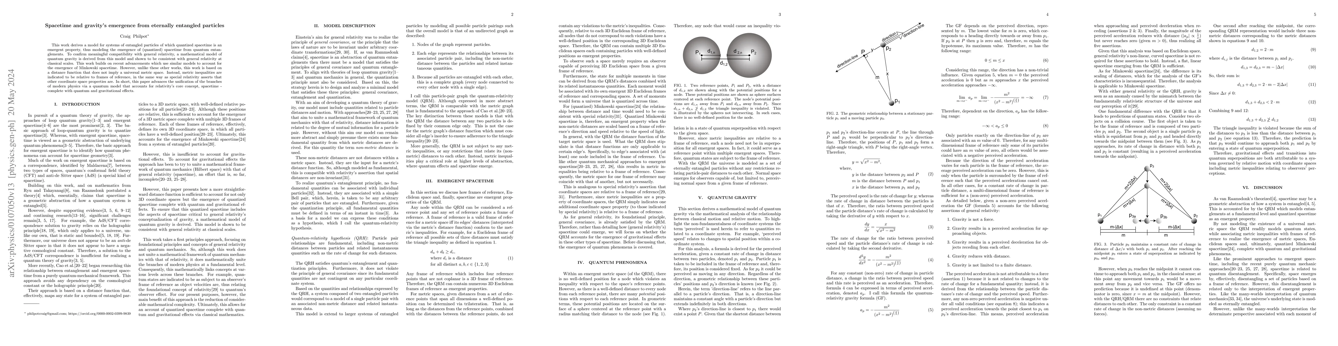 This research paper proposes a model where spacetime emerges from eternally entangled particles, showing compatibility with general relativity at classical scales.