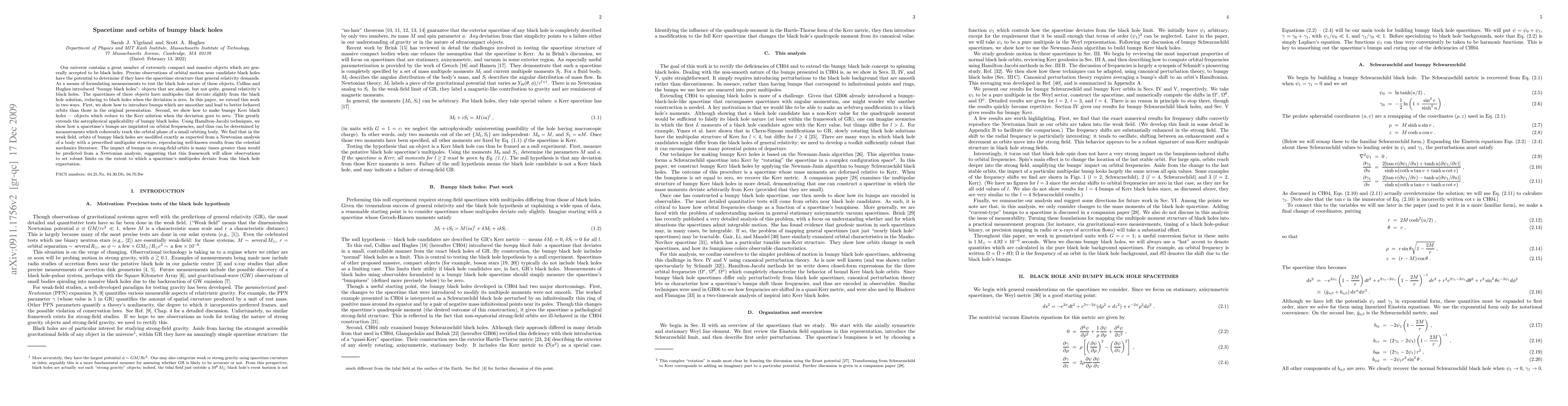 This paper explores "bumpy black holes," objects that slightly deviate from the general relativity black hole solution, and introduces smoother bumps and bumpy Kerr black holes. It demonstrates that these deviations can be detected through precise orbital measurements, offering a method to test the spacetime structure near black holes.