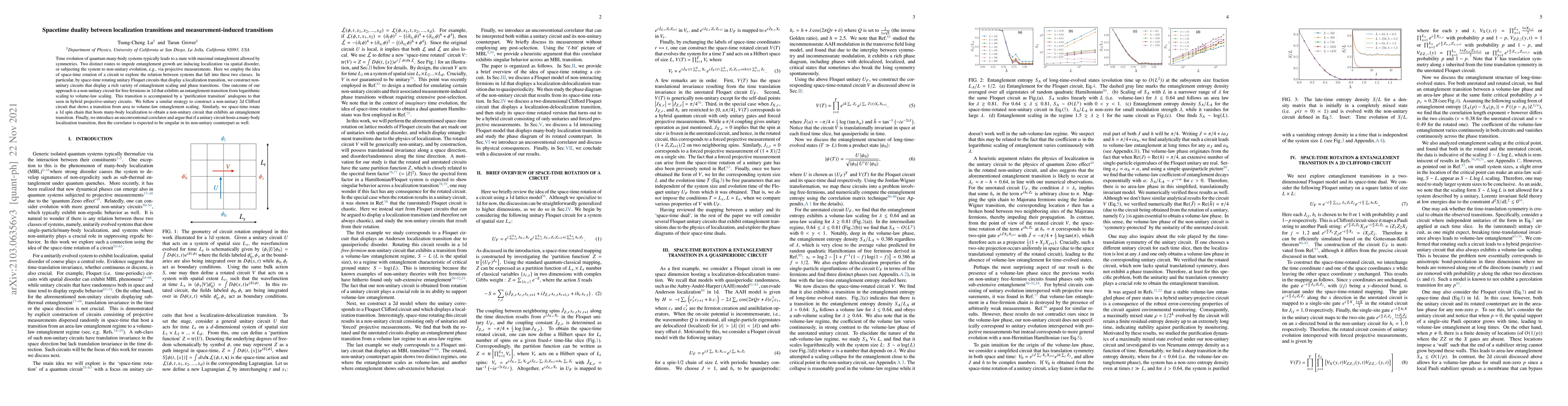 Developed a new approach to studying localization transitions and measurement-induced transitions using space-time rotation of unitary Floquet circuits