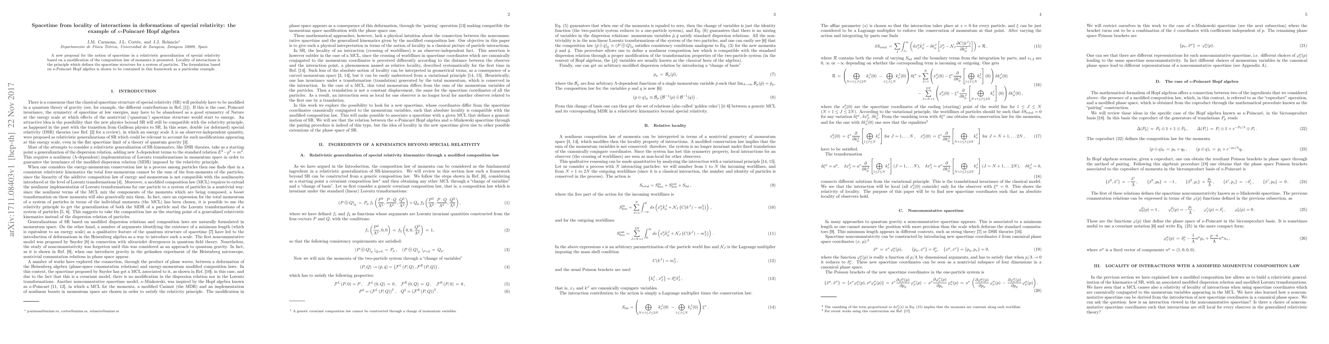 A new proposal for the notion of spacetime in a relativistic generalization of special relativity based on a modification of the composition law of momenta is presented. Locality of interactions is the principle which defines the spacetime structure for a system of particles. The formulation based on $\kappa$-Poincar\'e Hopf algebra is shown to be contained in this framework as a particular example.