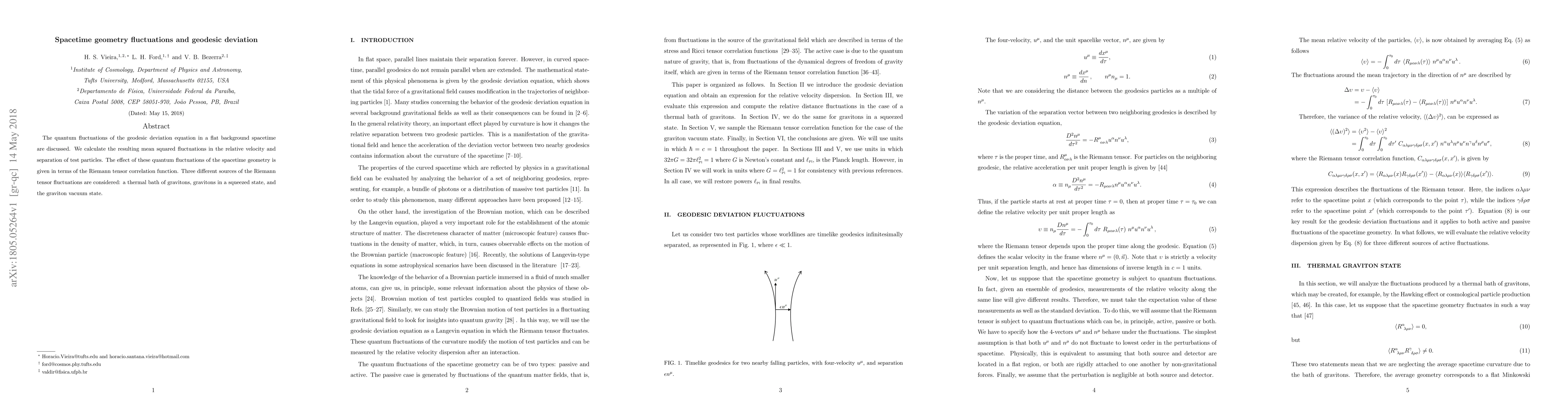 The paper presents a detailed analysis of geodesic deviation under quantum spacetime fluctuations, expressing relative velocity and position variances in terms of a Riemann tensor correlation function, and investigates both thermal and vacuum graviton states.